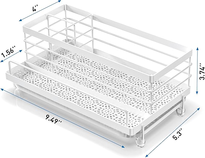 Cisily Sink Caddy Organizer, Kitchen Sink Accessories with Drip Tray, Rustproof and Non-Slip, White