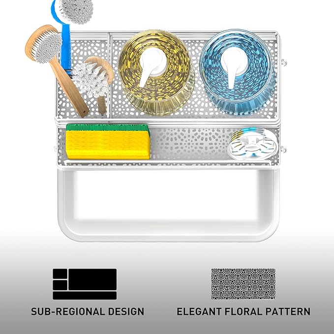 - 【KEEP DRY】The sponge holder features an elegant petal pattern cutout design and sturdy stain-resistant tray to keep it looking good. The hollow bottom design increases drainage speed, the drip tray collects excess water, keeps the sink rack and countertop dry.