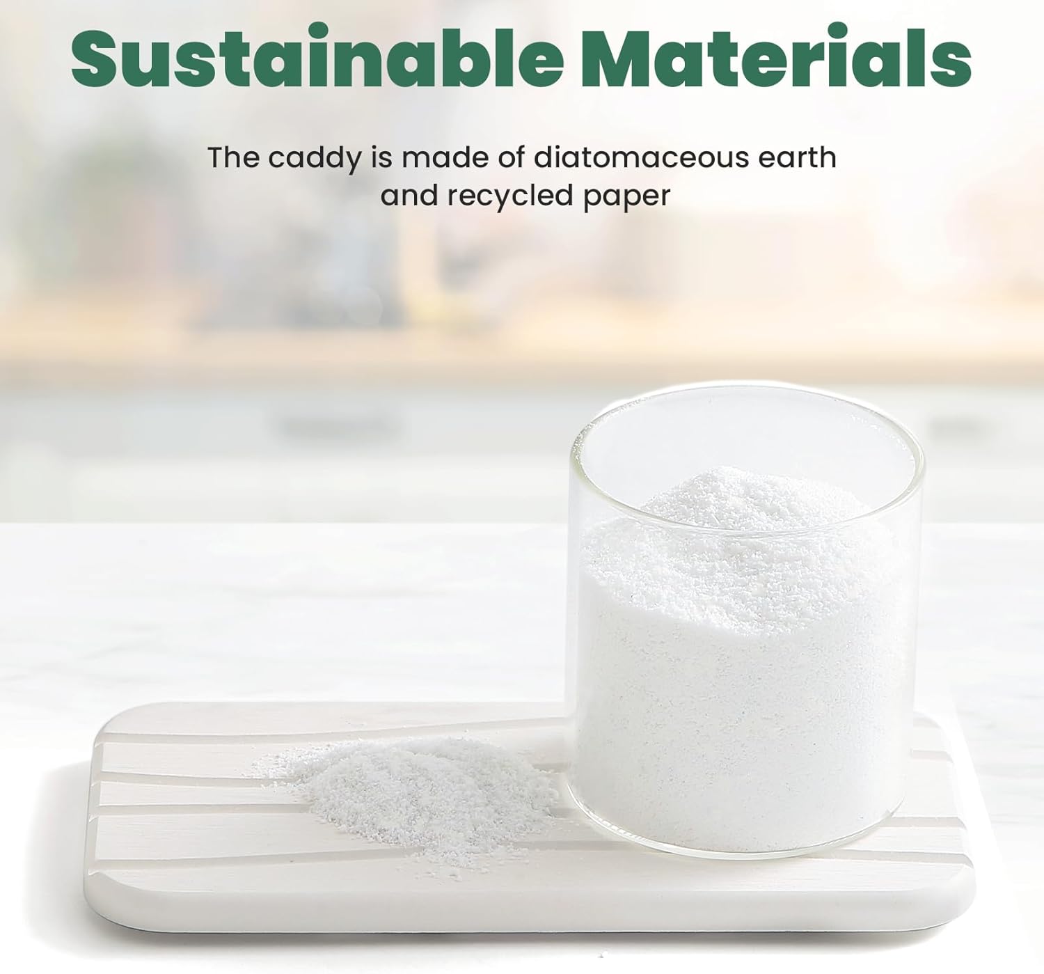 - INSTANT DRY SINK ORGANIZER - Keep your kitchen and bathroom countertops neatly arranged with this quick-drying stone sink caddy. This holder rack absorbs moisture quickly and is specially designed for your soaps, sponges, or brushes