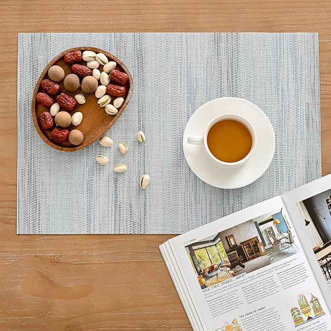 - Elegant and Practical Design: With a luxurious vinyl woven texture, precision cutting, and heat-trimmed edges, our double-sided placemats offer a sophisticated and practical solution. They provide a non-slip surface, resist fading, and are easy to clean, elevating your dining experience.