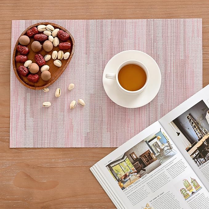 Leetaltree Misty Rose Placemats Set of 4 - Heat Resistant Non-Slip Place mats for Dining Table, Washable Durable PVC Vinyl Woven Table Mats(Misty Rose, 4)