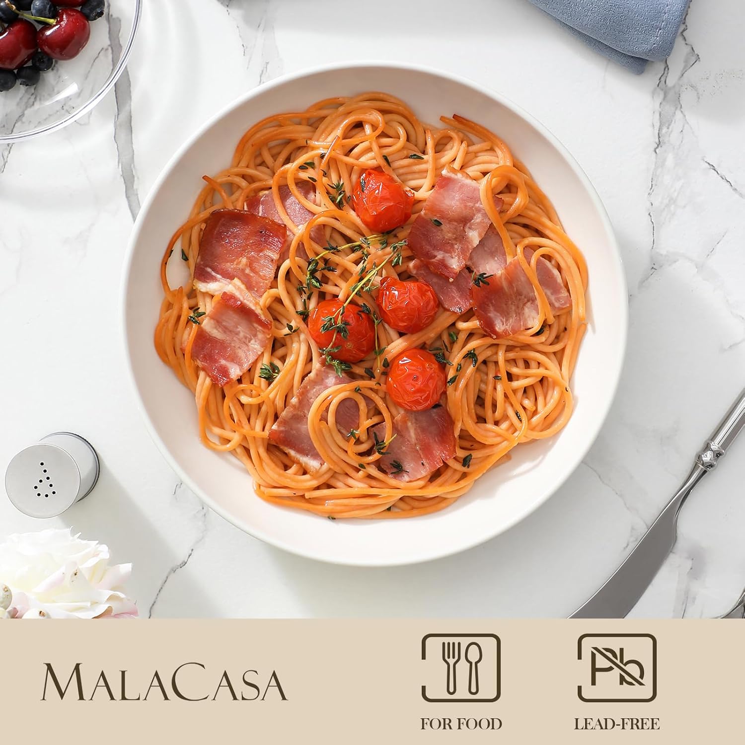 MALACASA 8.85" Large Pasta Bowls, 42 OZ White Salad Bowls Soup Bowls, Porcelain Serving Bowls Set of 4, Large Kitchen Bowl Plates Pasta Plates, Microwave & Dishwasher Safe, Series REGULAR