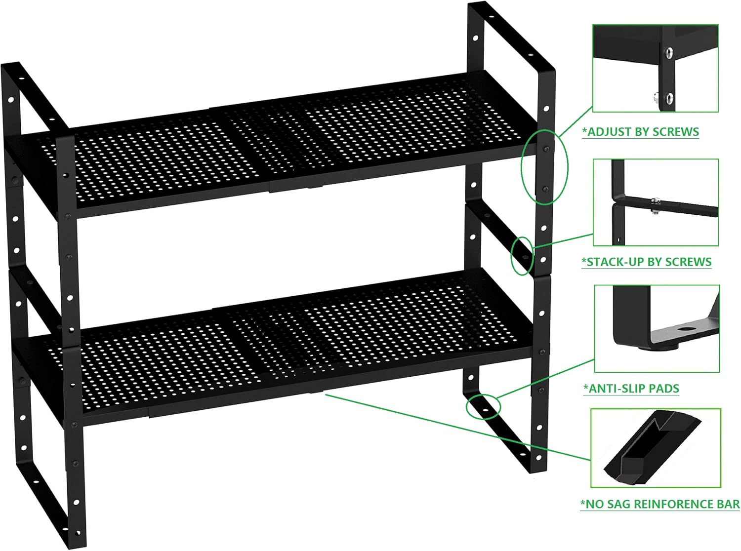 - Special Feature : Adjustable, Durable, Expandable, Stackable, Tool-Free