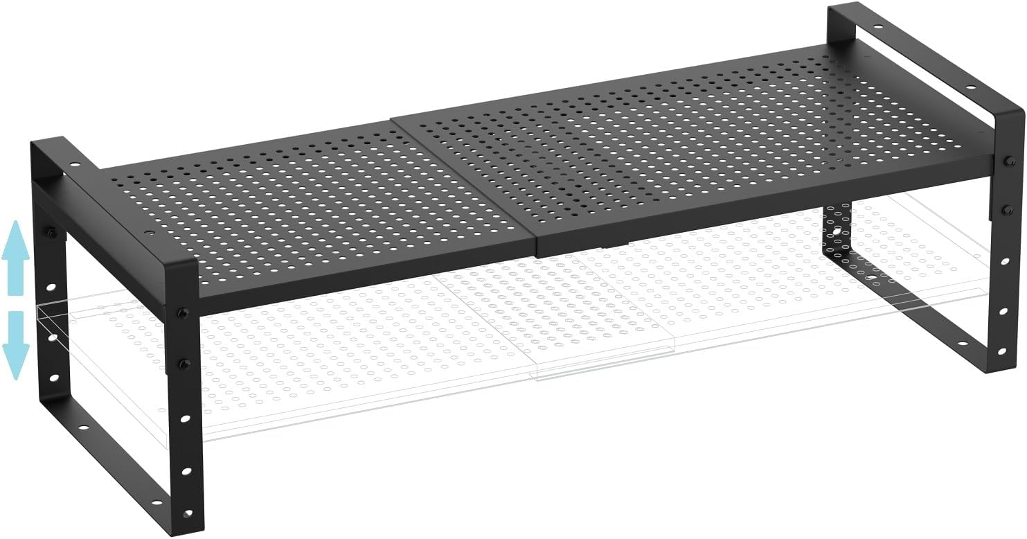- ⭐【Expandable & Stackable Cabinet Organizer】This cabinet shelf is expandable, allowing you to adjust the width and height to suit your needs.The measures are 8.11"Dx16.54~27.17"Wx2.17~7.88"H.There are 5holes for each side which can be adjusted the width from 16.54" to 27.17".It also can be easily stacked up to a 2 or 3 tier kitchen organizer.