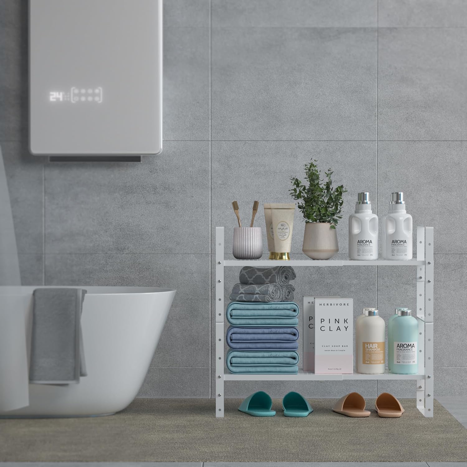 - ⭐【Versatile Spice Shelf for Cabinet】This adjustable kitchen counter stand shelf instantly create additional storage space.It is very helpful to organize the Bottles, Cans, Bowls, Plates, Pans, Soup pots in kitchen,Pantry and cupboard.Also a great space-saving option for the bedroom, study, sitting room, bathroom, and more.