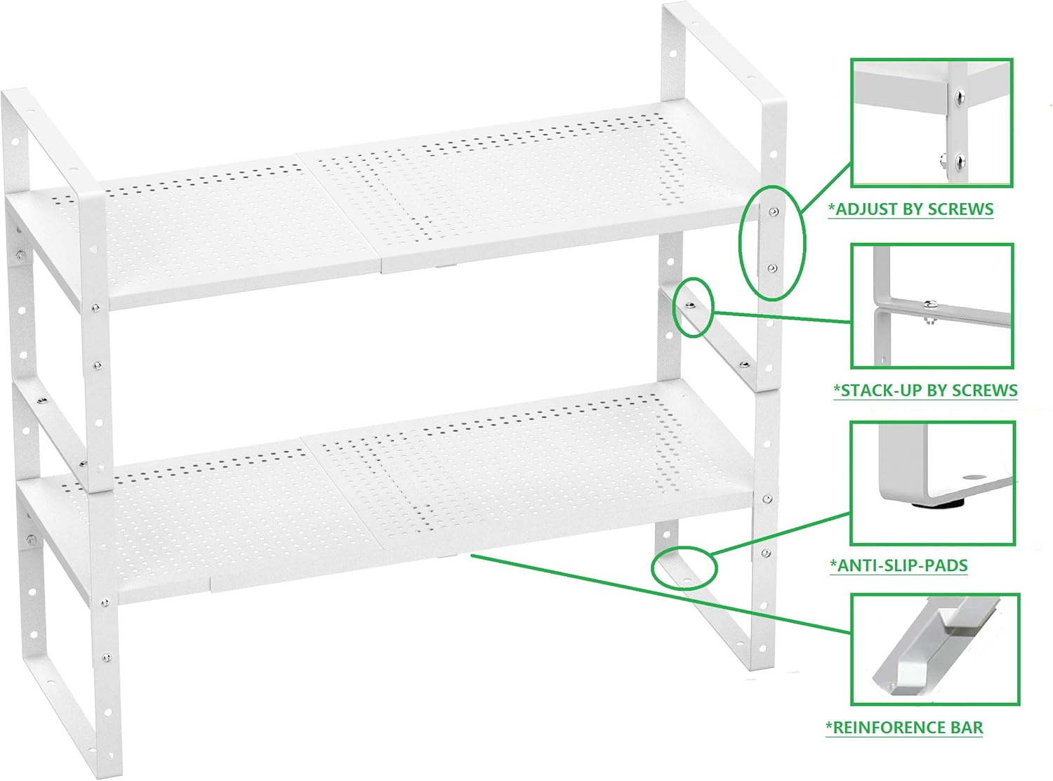- Special Feature : Adjustable, Durable, Expandable, Stackable, Tool-Free