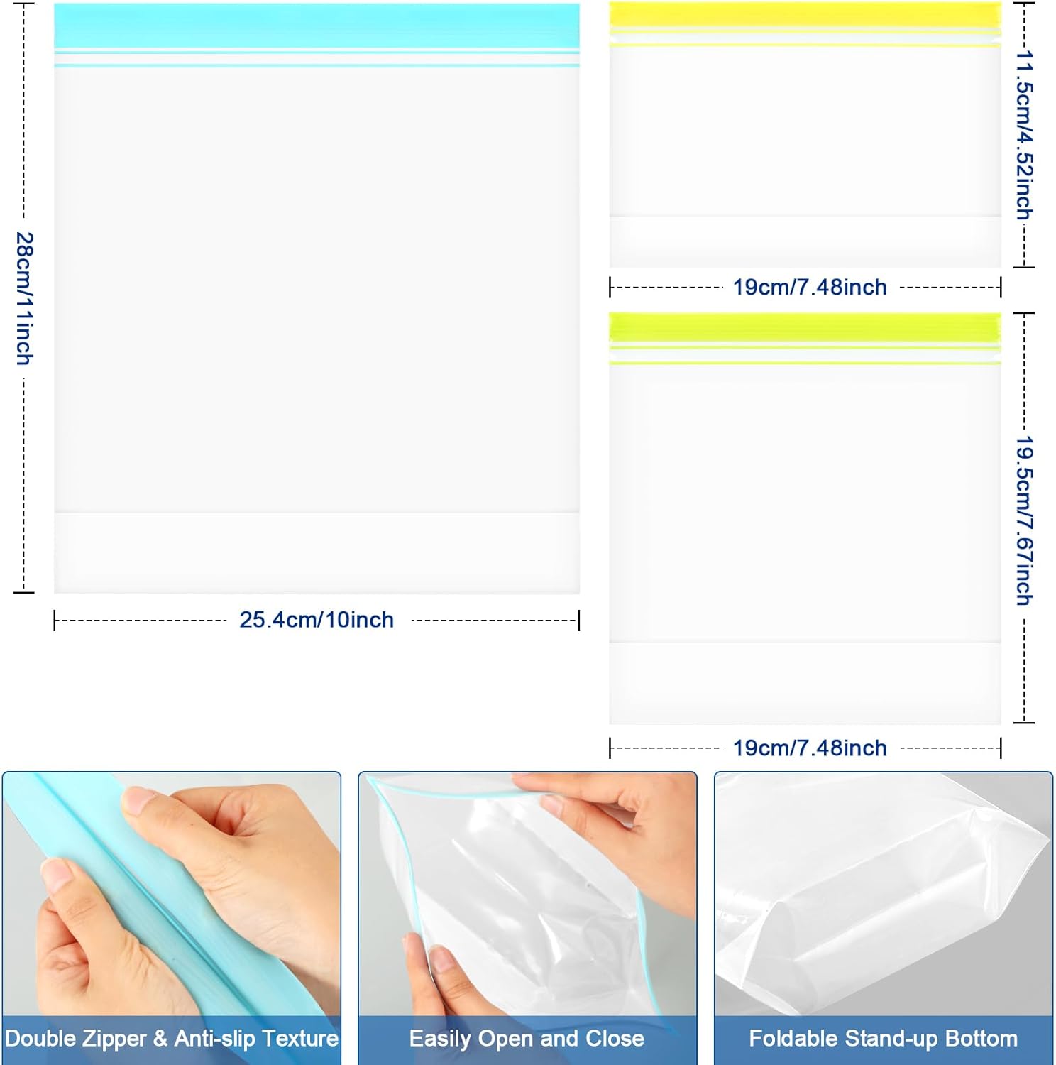 - LEAKPROOF & AIRTIGHT: These reusable bags will give you absolute confidence to hold liquids or sauces. Because they are 100% leakproof. The double-seal design keeps liquids and air locked inside,Perfect for storing and preserving food.With an anti-slip opening design, everyone can easily open and close the reusable freezer bags.