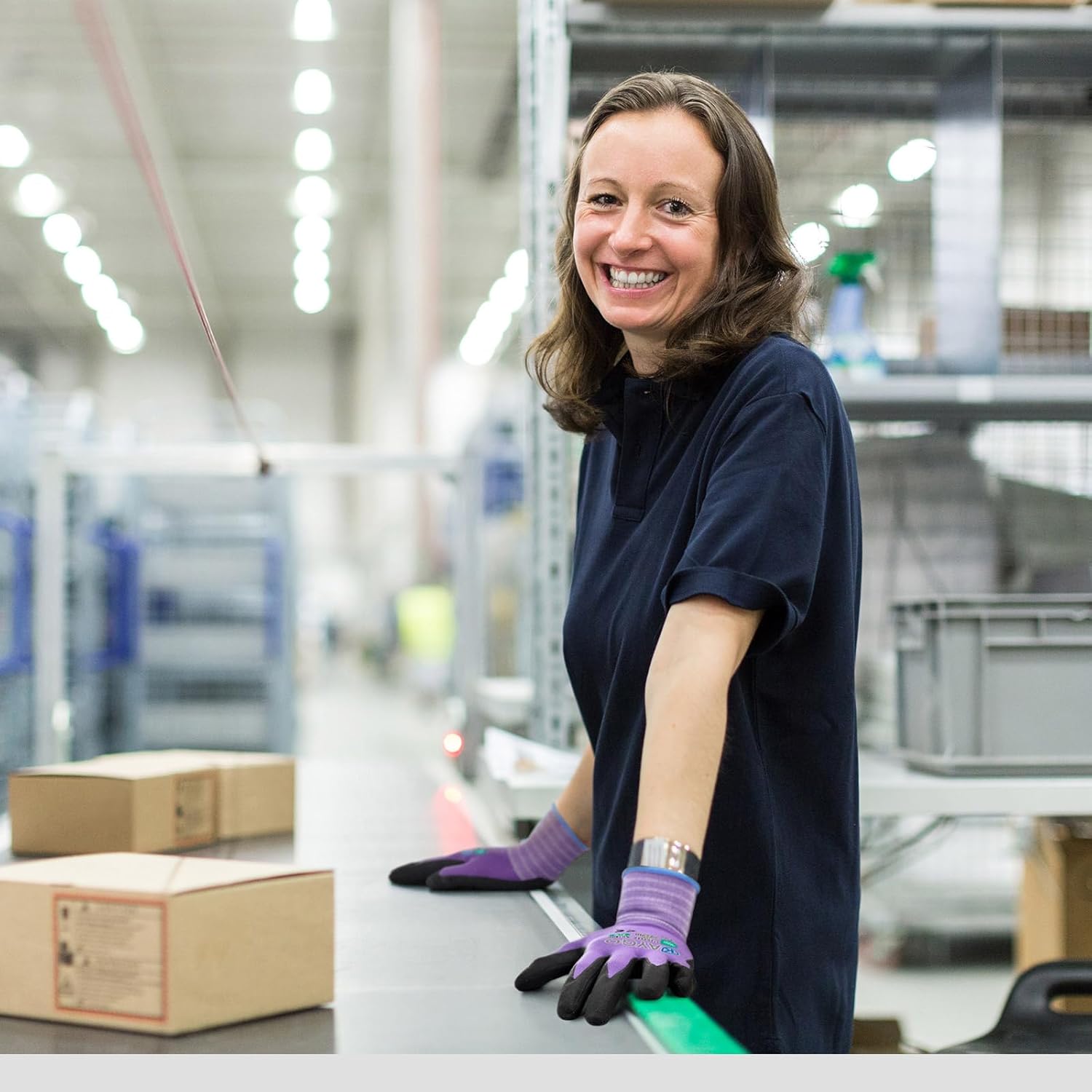 KAYGO Safety Work Gloves MicroFoam Nitrile Coated, 3 Pairs KG18NB,Seamless Knit Nylon Glove for Men and Women, Ideal for Automotive,Warehouse,Construction (Medium,Purple)