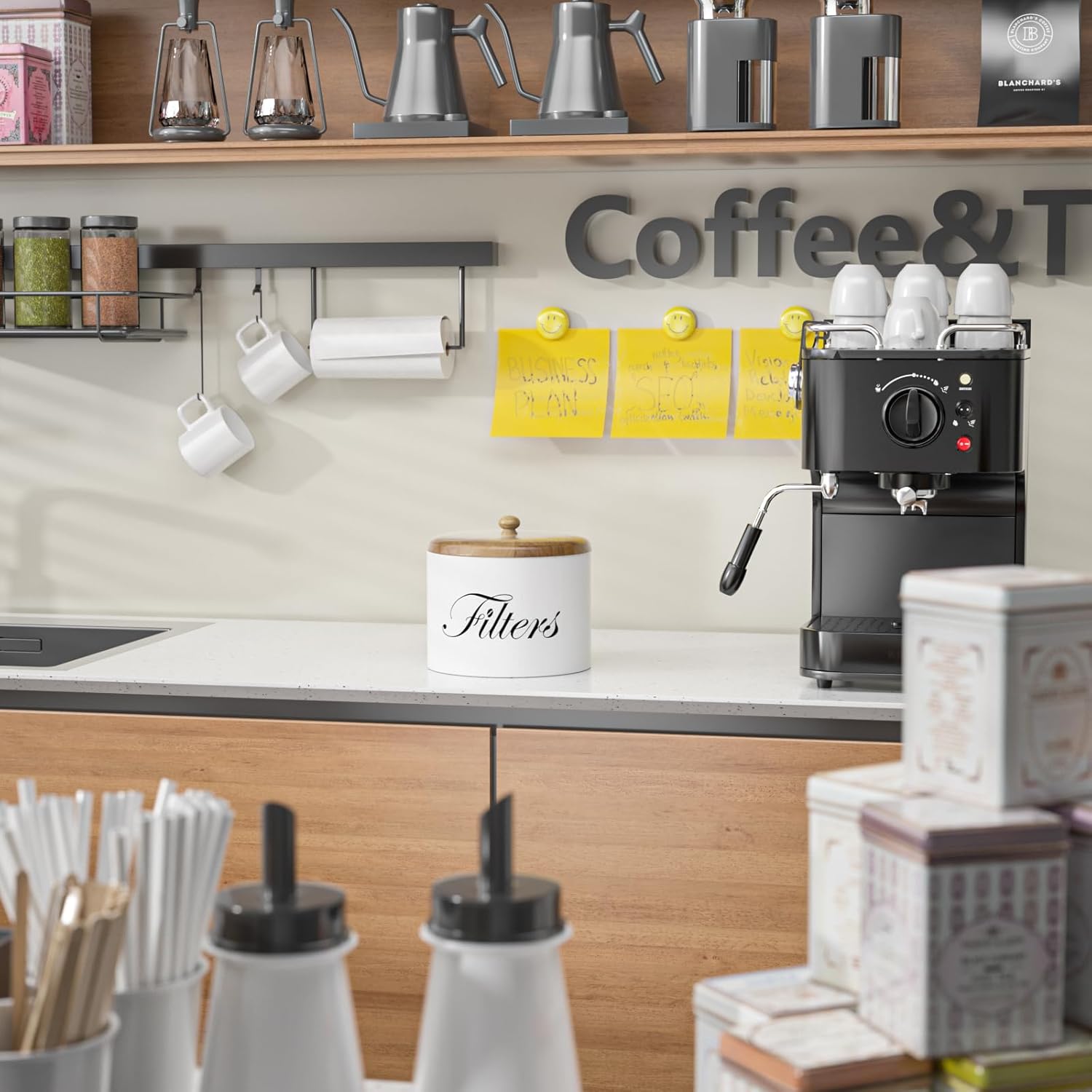 - 【Sturdy Coffee Bar Decor】: Our coffee filter holder storage is made from wood, Smooth surface are straightforward to clean, wipe with a damp cloth. It is a nice decoration in your Kitchen Counter, coffee bar decor