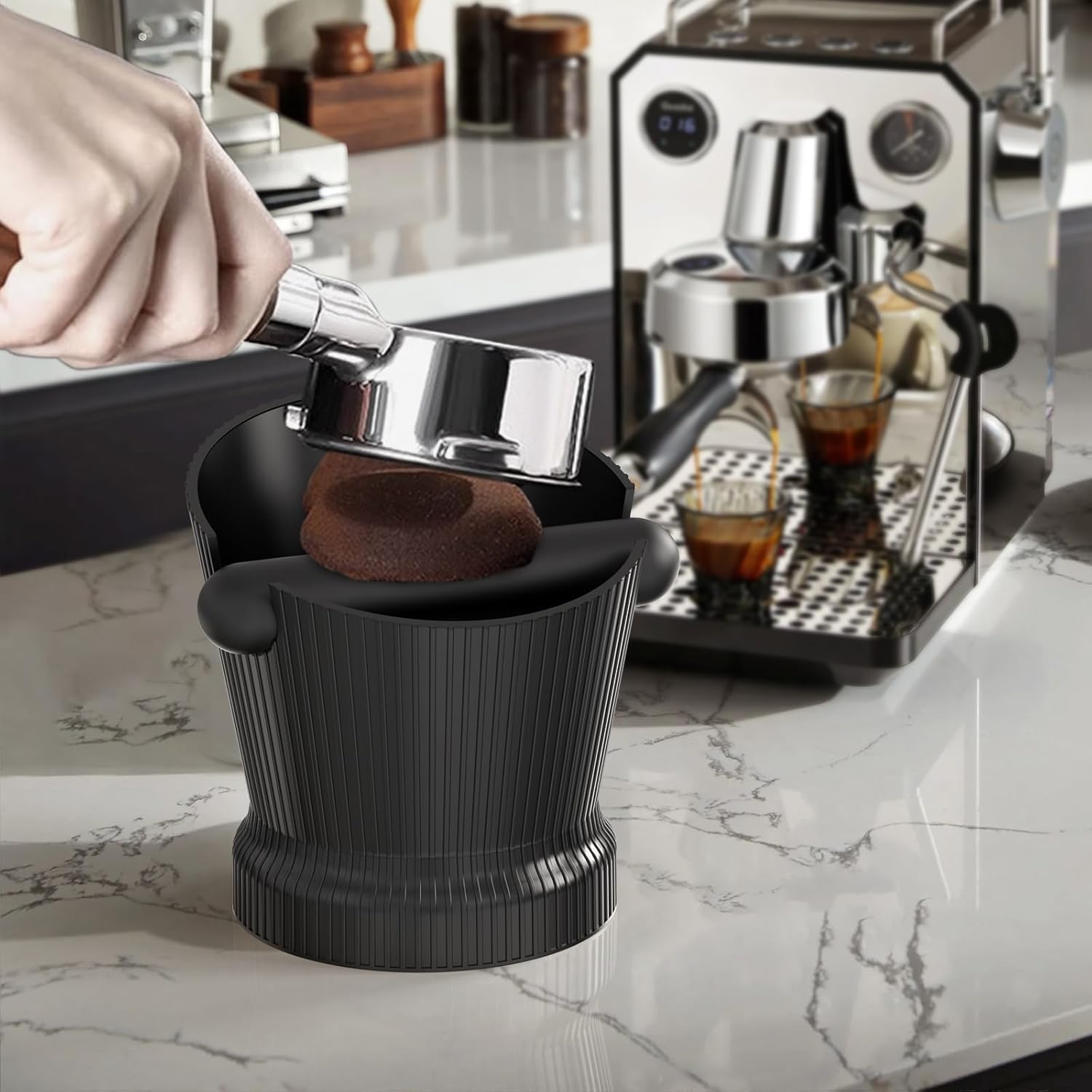 - PERFECT SIZE: Prevent coffee grounds from splashing with this espresso knock box, Protect your portafilter and hands with shock-absorbent knock box.