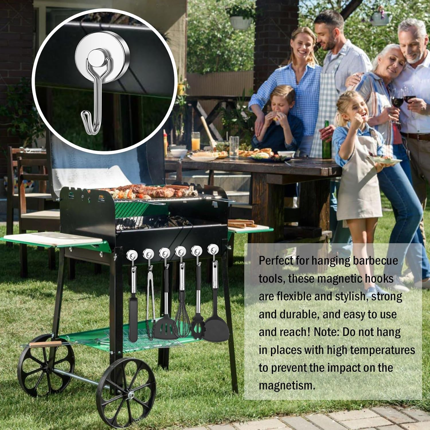 FINDMAG Magnetic Hooks, 60lbs+ Magnetic Hooks for Cruise Ship Essentials, Rare Earth Magnet Hooks Heavy Duty for Hanging, Magnetic Hanger for Garage, Grill, Fridge, Toolroom, Workplace, 6 Pack, Silver
