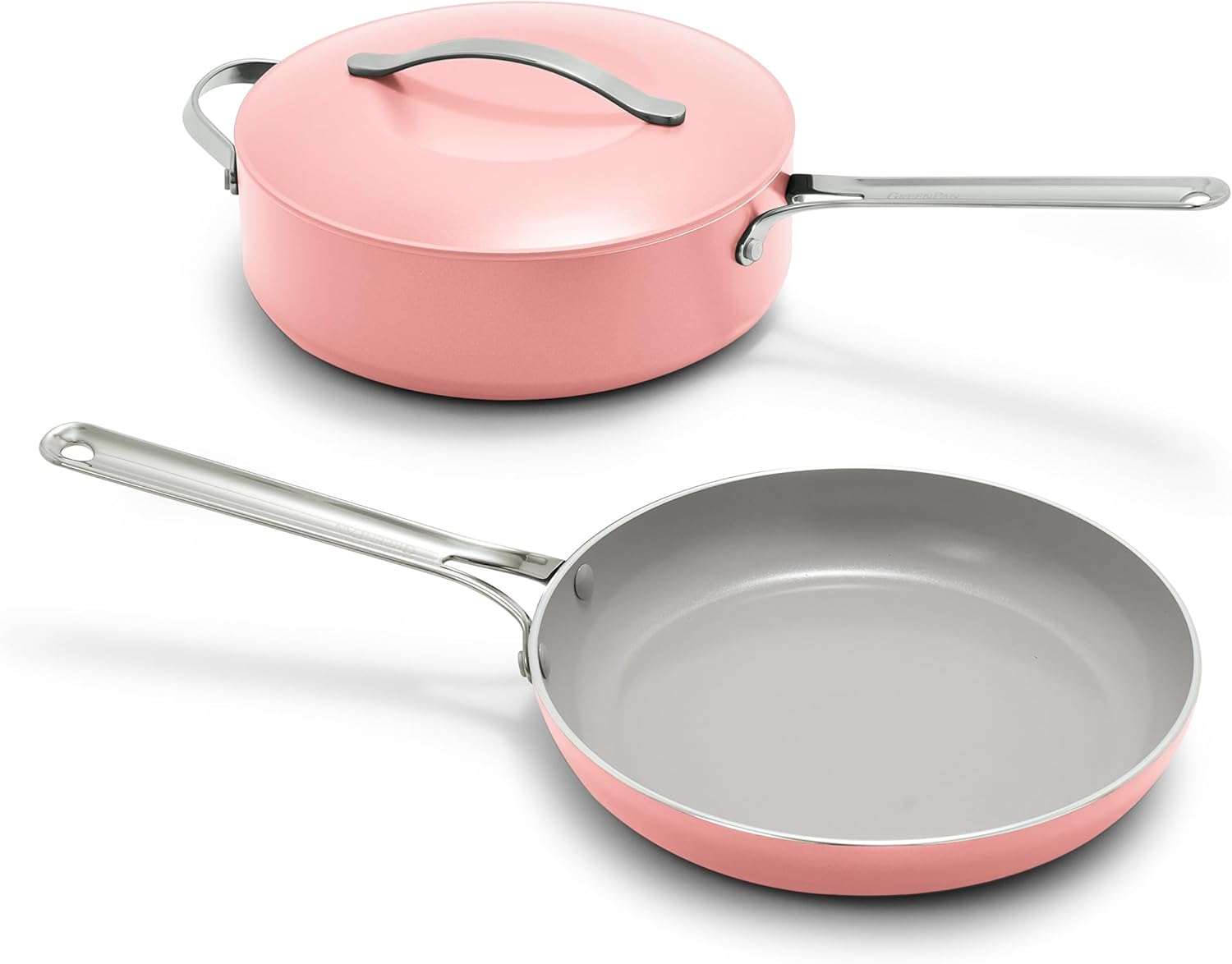 GreenPan Nova 10” Frying Pan Skillet and 4.37QT Sauté Pan with Lid, Oprah’s Favorite Things 2024, PFAS-Free Ceramic Nonstick, Induction Suitable, Sear, Fry, Broil, Dishwasher & Oven Safe, Coral
