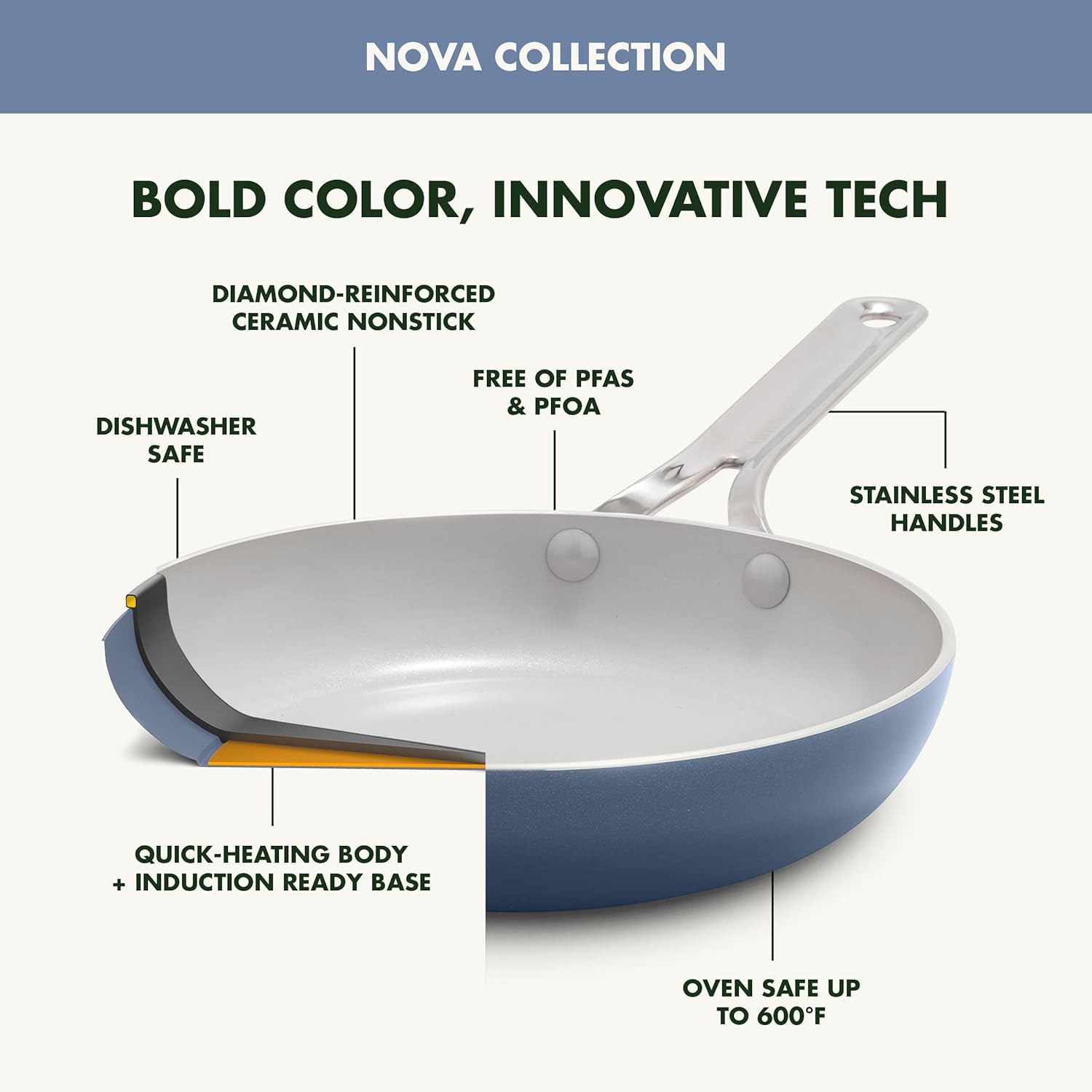 - NOVA NOW AVAILABLE ON AMAZON: We’re so ecstatic to bring our all-new, extremely durable, and vibrant line of cookware to Amazon! GreenPan Nova is uniquely designed for every home cook to start cooking with confidence.