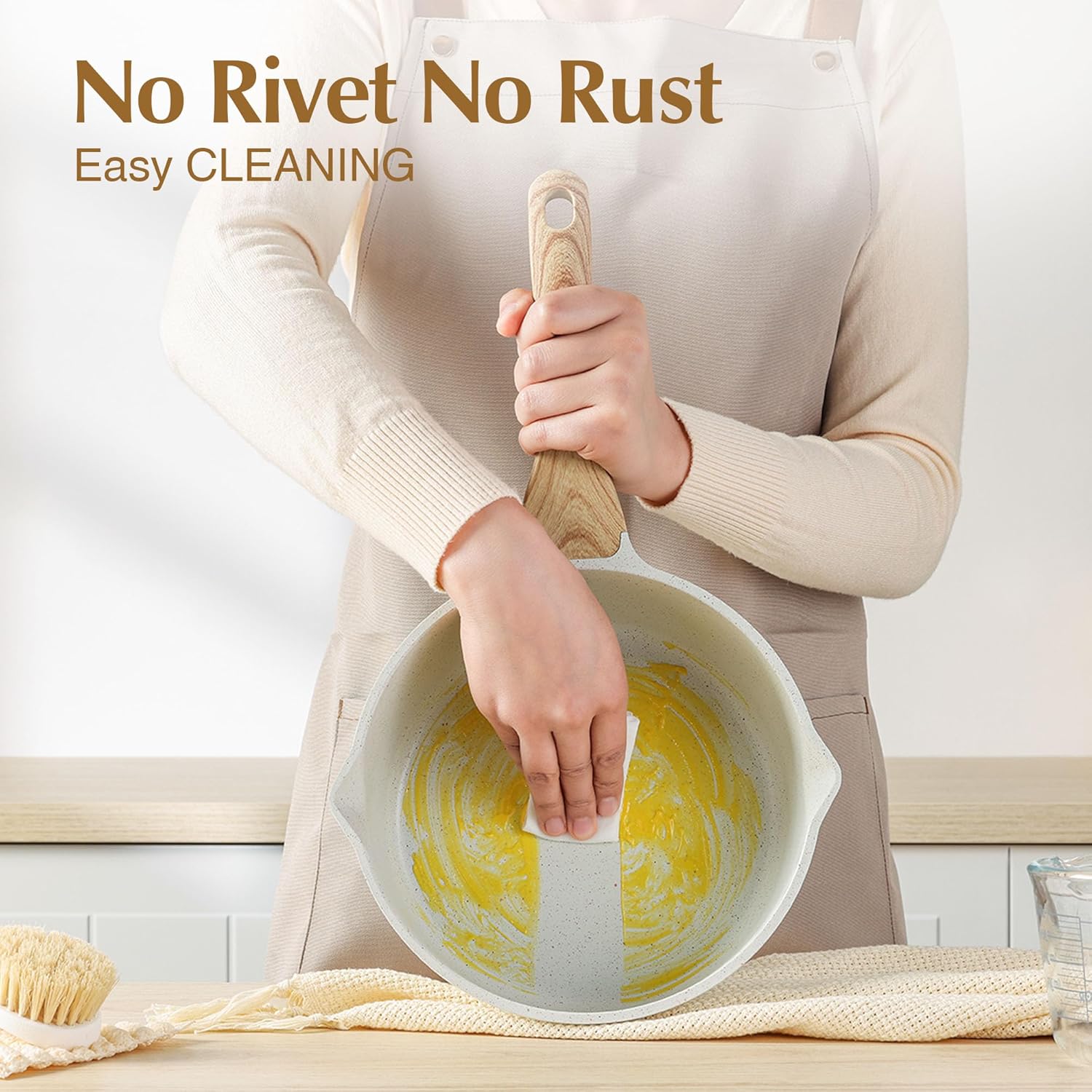- Safe & Healthy - SENSARTE natural ceramic nonstick saucepan is free of intentionally added PFAS, PFOA, lead, and cadmium. Safe cooking for your family and healthier diet with less oil.