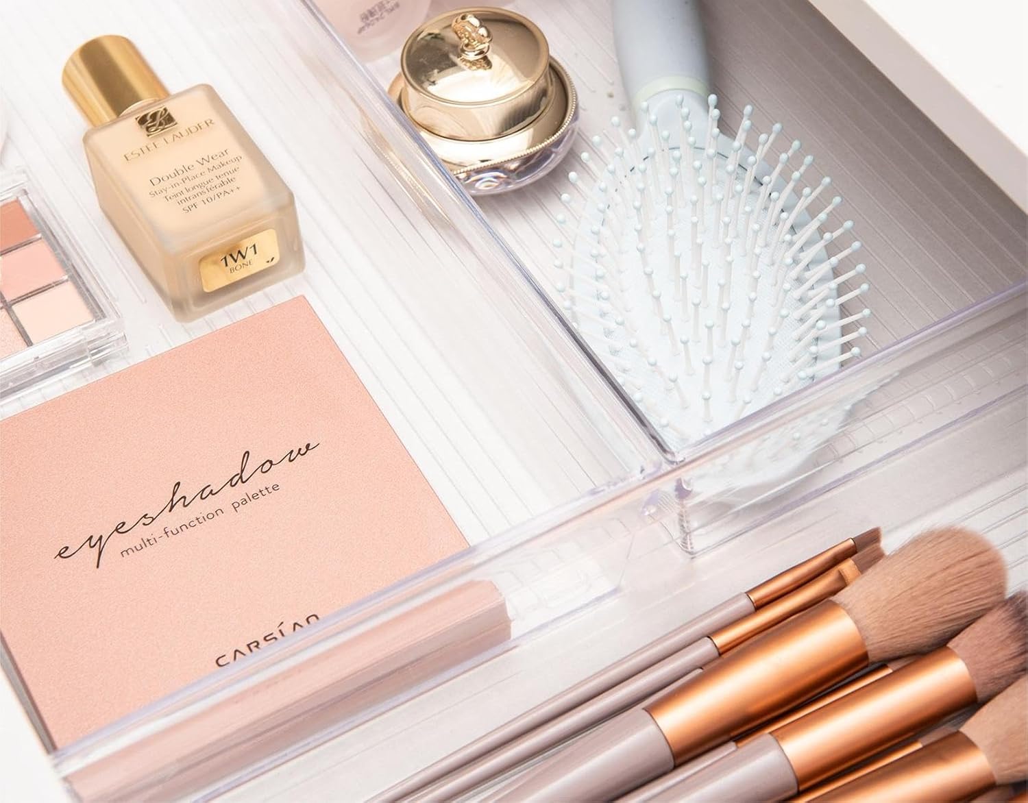 - Storage:perfect for bedroom/bathroom/kitchen drawer or desktop ;organizing eye-shadow palettes,make up tools, cosmetics, Utensils ,silverware.
