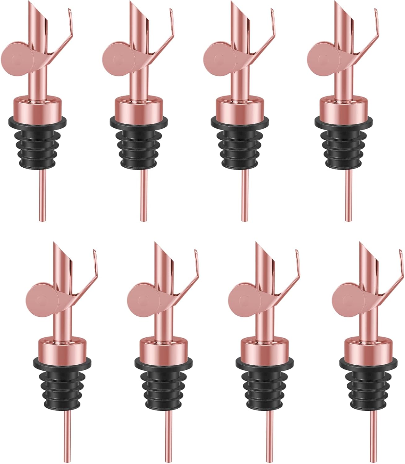Olive Oil Dispenser Spout, Weighted Liquor Pour Spout, Syrup Dispenser Spout, Stainless Steel Automatic Pour Spouts for Liquor Bottles, Oil Bottles, Vinegar 8 Pack Rose Golden