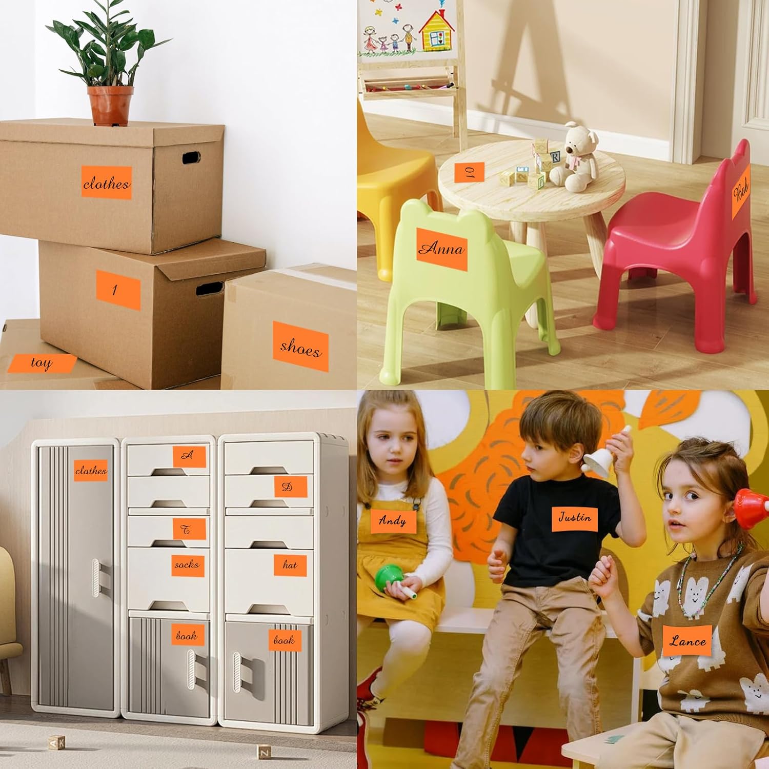 STARLIBOO 3"X5" Rectangle Colored Labels, Removable Moving Labels for Boxes, Permanent Warehouse Moving Stickers Square Label (250Labels, Orange)