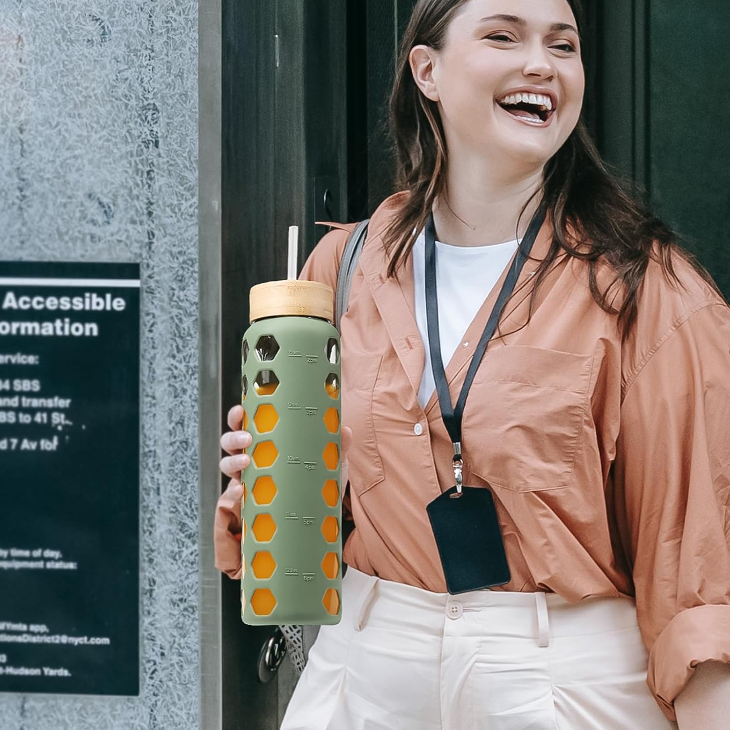 - GLASS WATER BOTTLES WITH TIME MARKER:MUKOKO 32oz glass water bottle with time marker preserves the purity of water.This is a very handy way to keep up with daily water intake,stay hydrated and healthy.