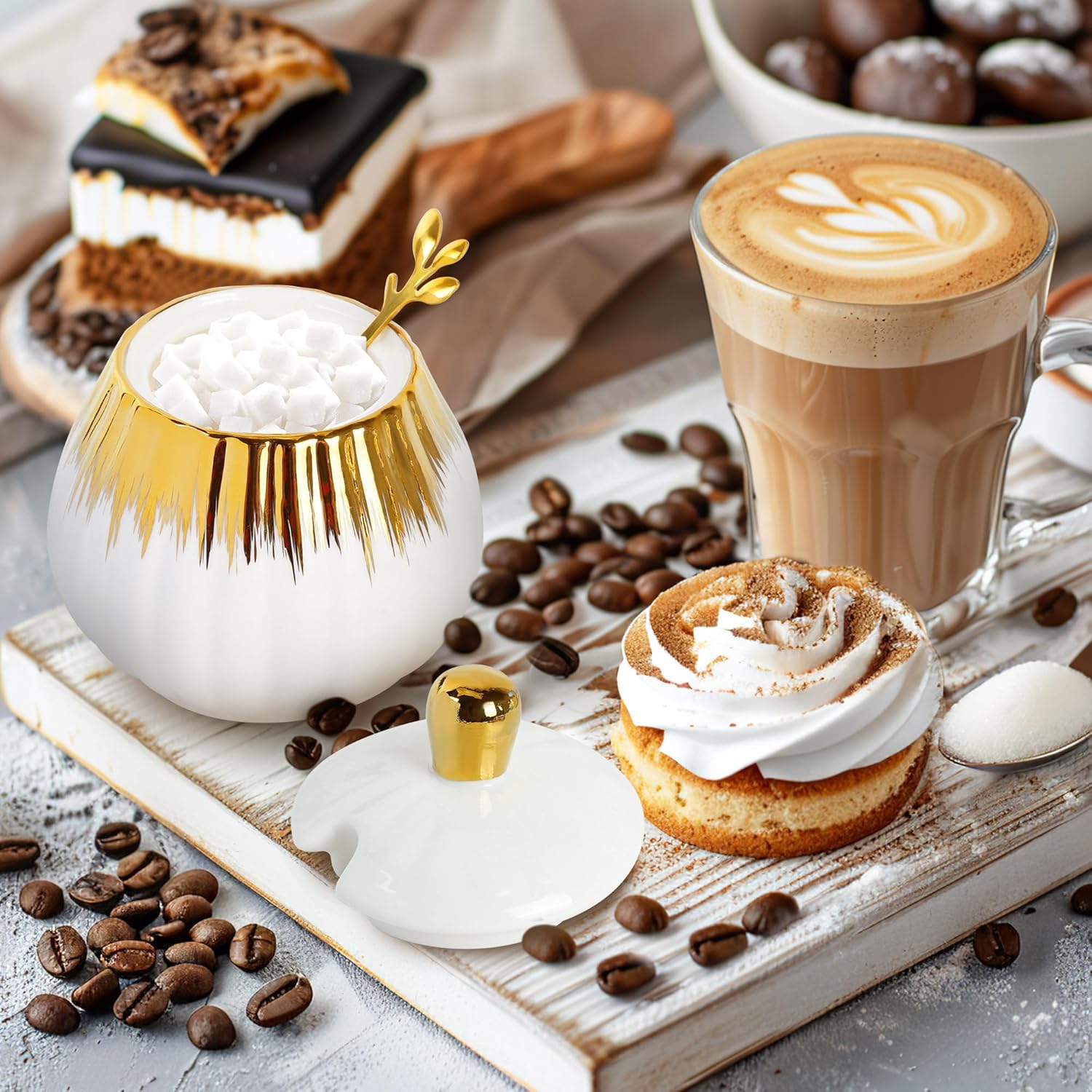 - 【Elegant Design】Presenting our exquisite European-style Sugar and Creamer Set, adorned with delicate gold trim for a touch of luxury. Elevate your table setting with this graceful ensemble, a perfect blend of functionality and timeless beauty.