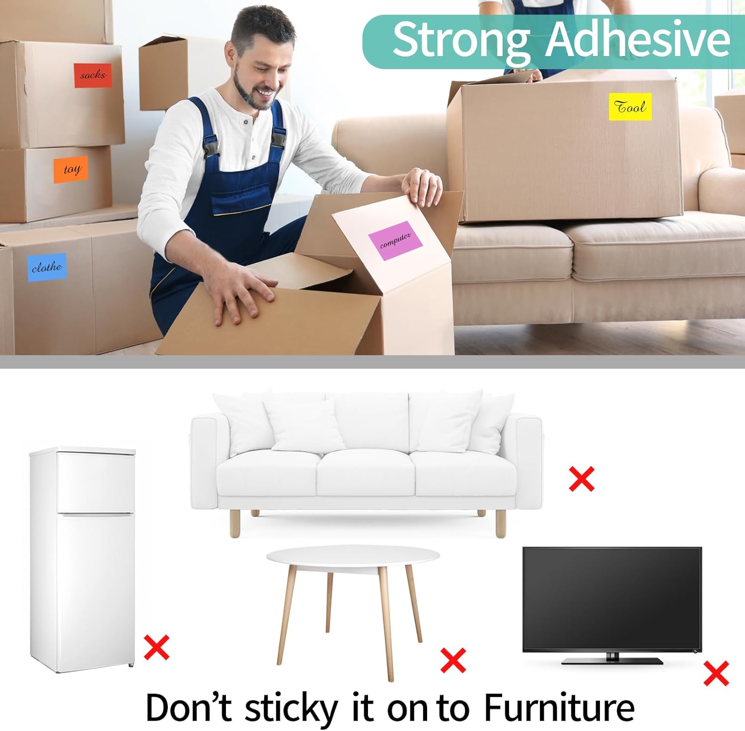 - Self-Adhesive Permanent Stickers: Our label stickers are strong adhesive bond, Non-Removable, you can easily used the stickers and sticks great on paper, clothing, plastic bags,moving boxes and most surfaces without falling off, serving you for a long time