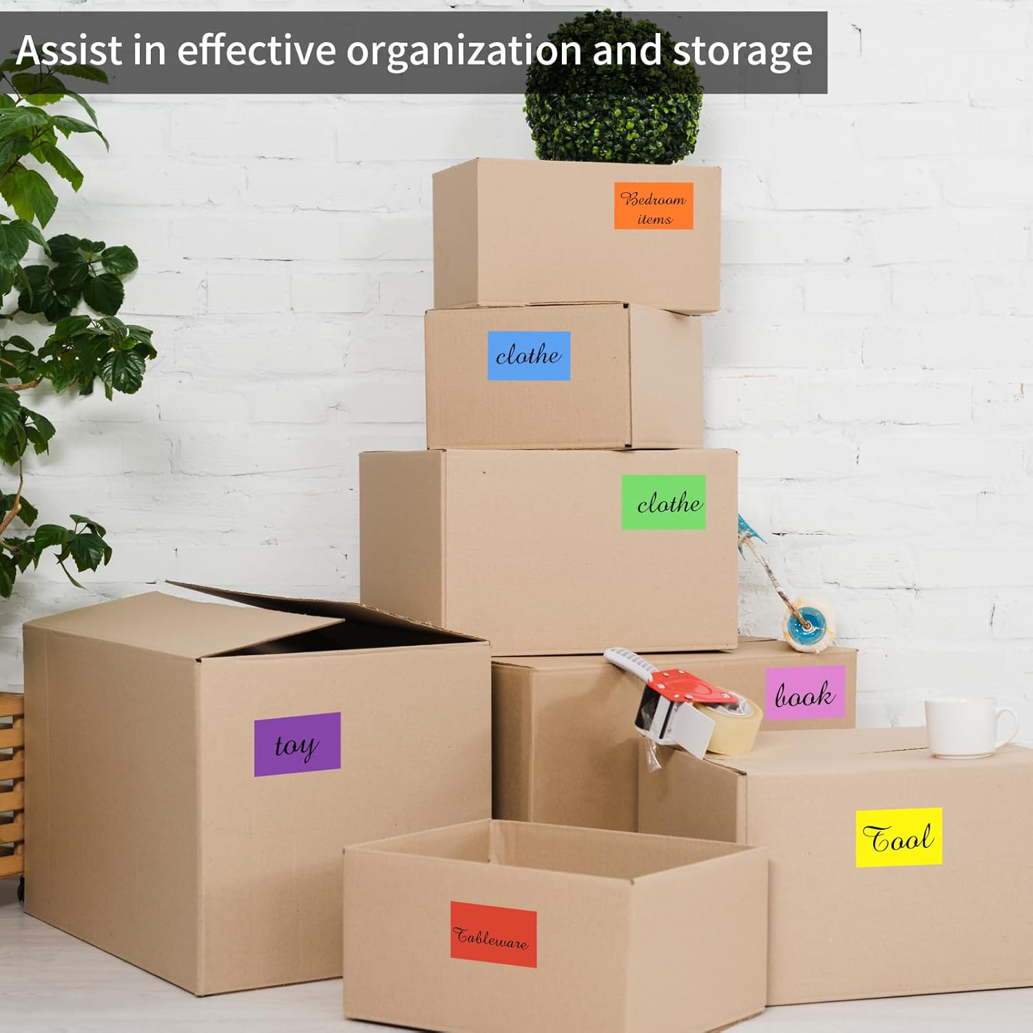 STARLIBOO Colored Labels Stickers, 3 x 2 Inch Rectangular Moving Labels for Boxes, 8 Colors Large Moving Stickers- 320 Pack