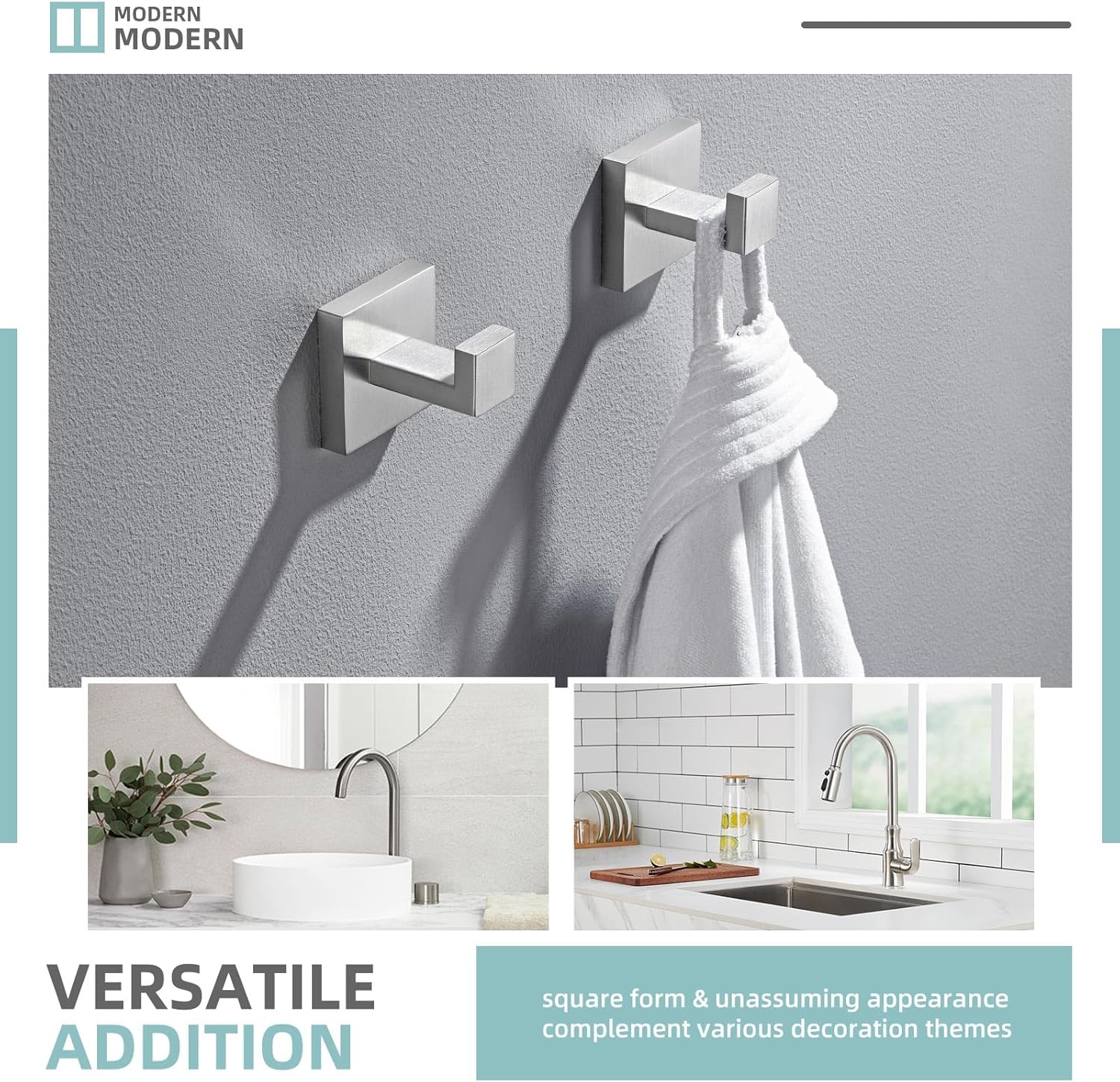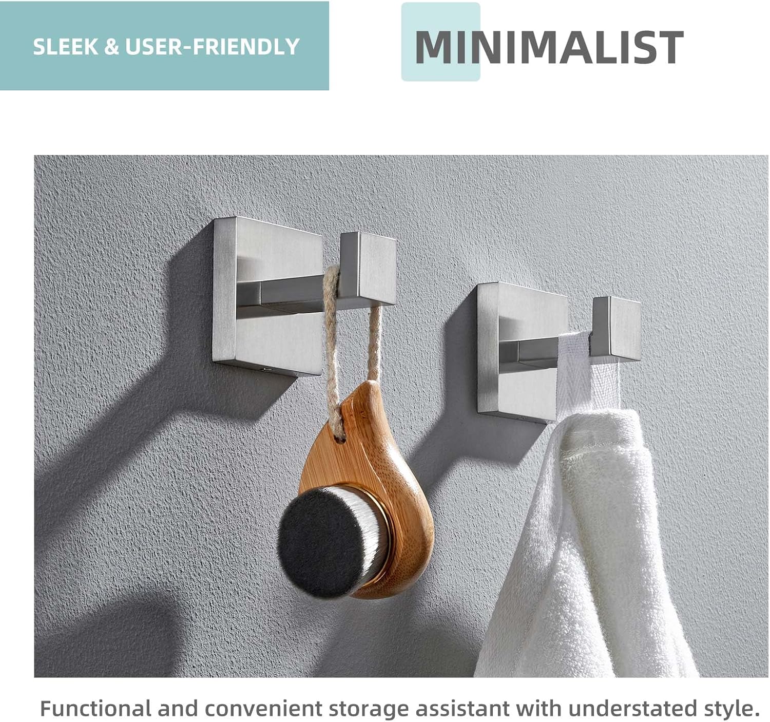 - MODERN AND UTILITY: clean geometric and minimalist design pairs with your existing fixtures, sleek and simple way to hold stuff like towels, robes, coats or bags