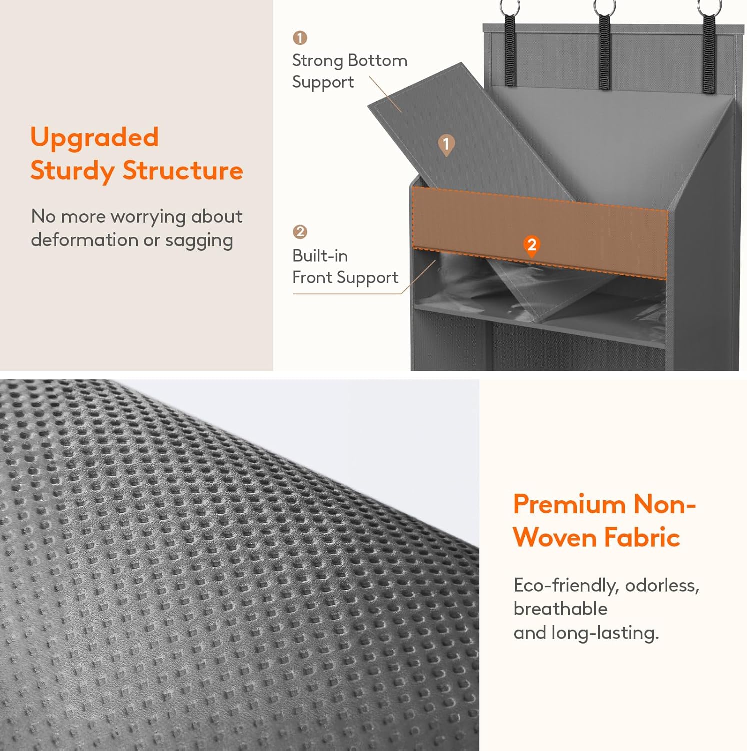 - Premium Material & Sturdy Structure: Lifewit hanging over the door organizer is crafted from high-quality non-woven fabric, making it odorless, breathable, and tear-resistant. The thickened cardboard support insert ensures its sturdy structure and anti-tilt, with a heavy load of 40 lbs(18kg), perfect for long-term use.