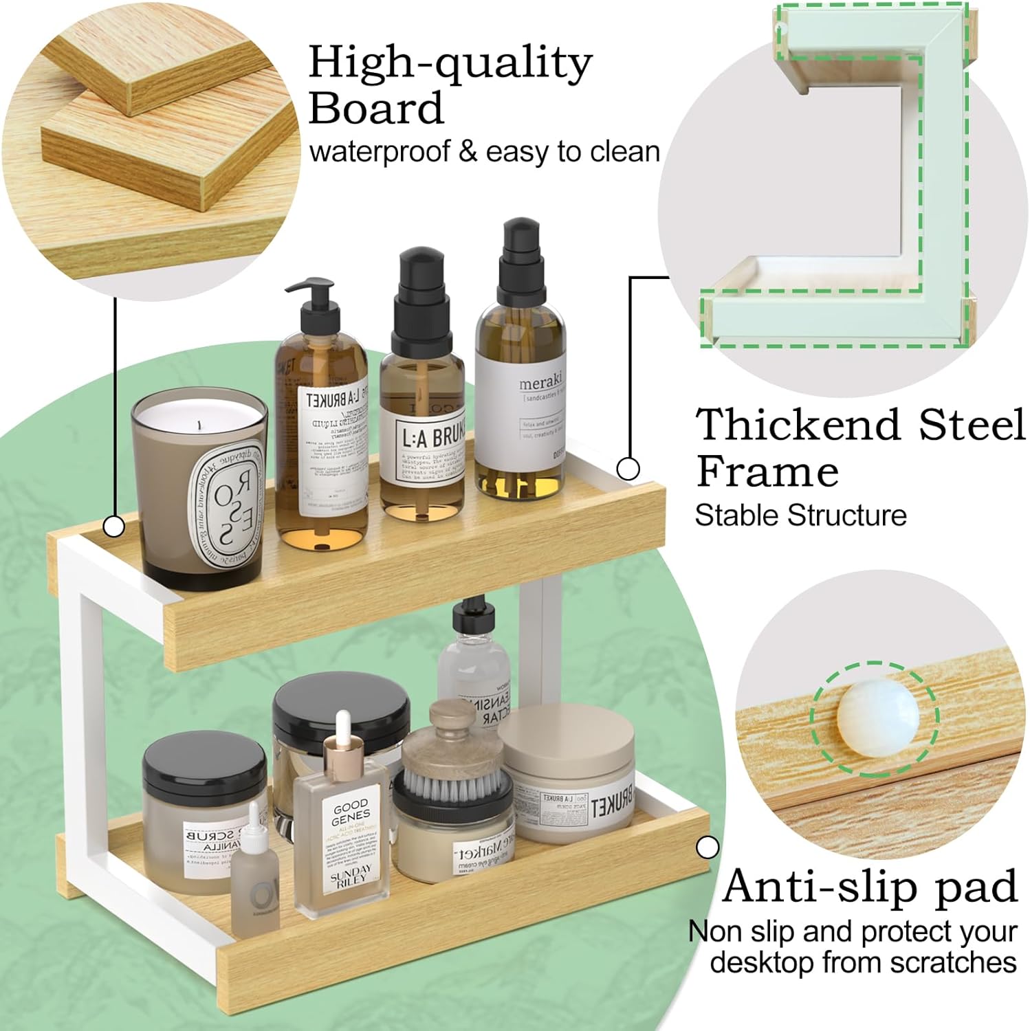 - 【Multifunctional Counter Shelf】This wood shelf organizer can be used as a spice rack in kitchen, a countertop organizer for coffee bar or desk, an organizer for cosmetics in bathroom, etc. It can make your kitchen/bathroom/office/home.. more clean and tidy.