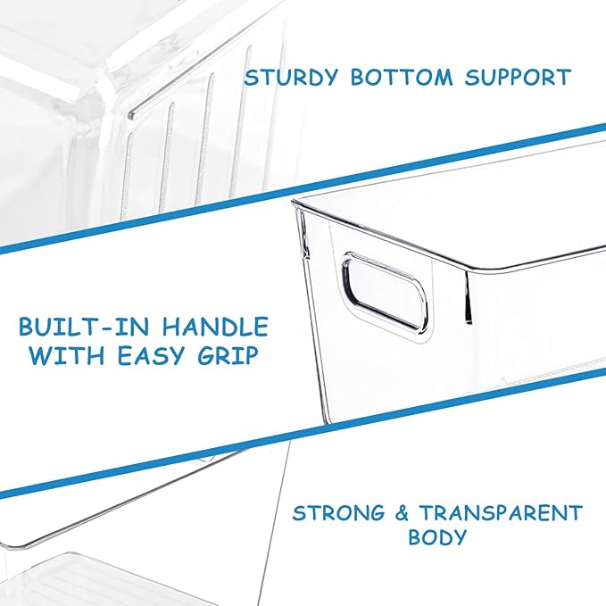 - 【CLEAR VIEW – EASY ACCESS & ORGANIZATION】 Fully transparent design allows quick visibility and access to contents, enhancing efficiency in fridge organization, pantry shelves, cabinets, and drawers. Keeps food, toiletries, or daily essentials neatly arranged and easy to find.