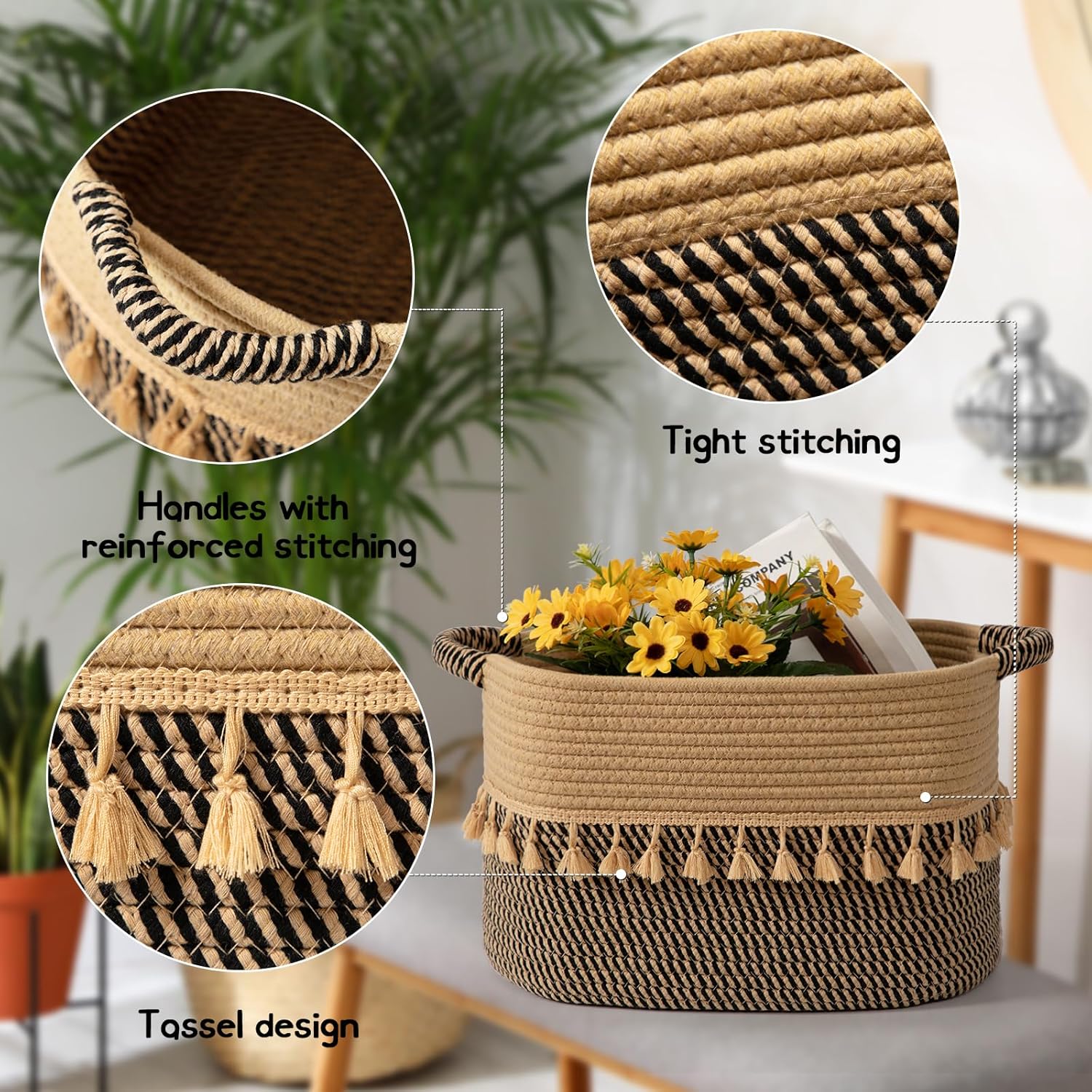 - Thoughtful gift idea: Our woven storage basket are soft, flexible, and durable, with a unique tassel design that sets them apart from the rest. Itβs a thoughtful gift for friends and family. The fabric storage are packaged nicely and ready to be gifted