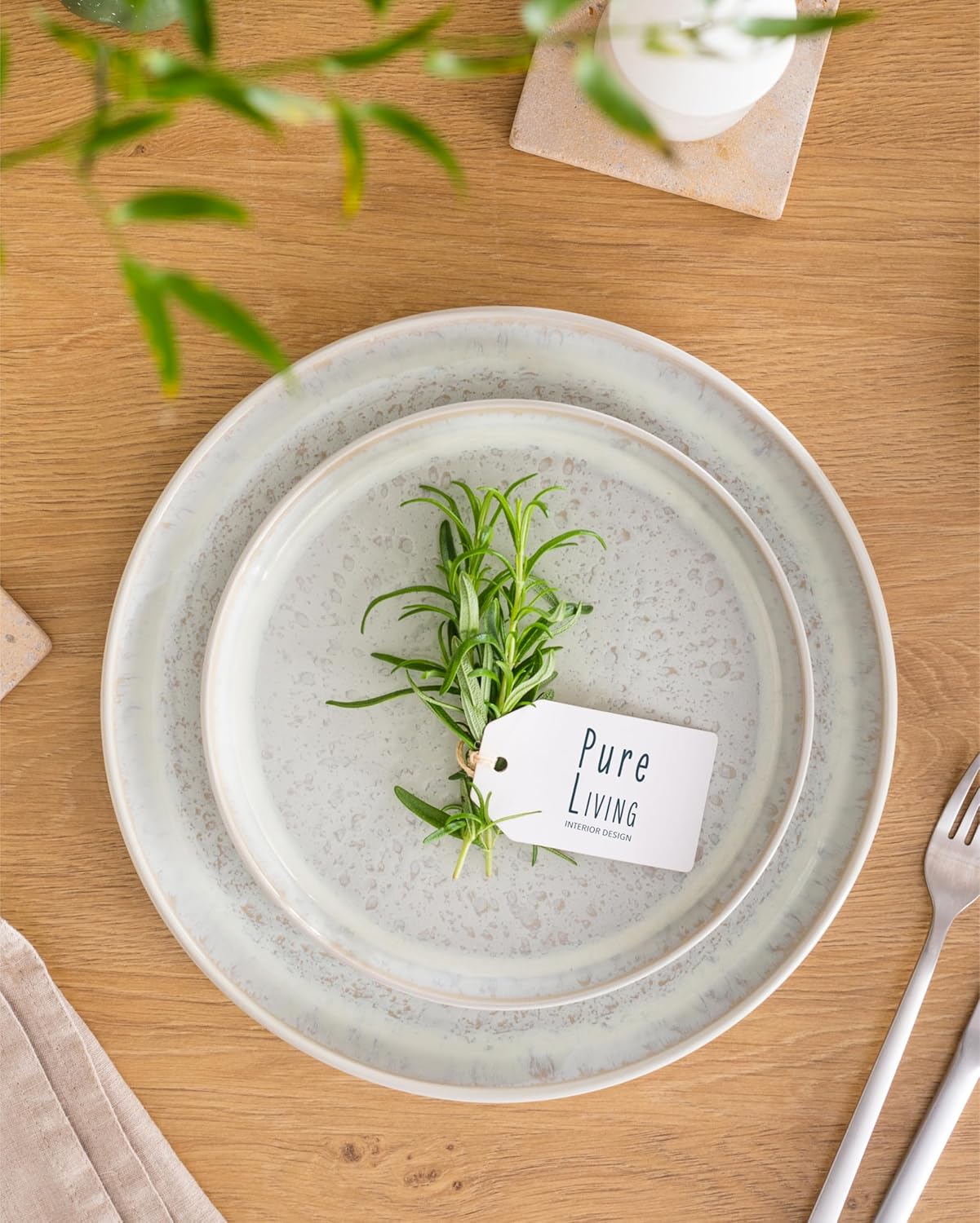 Stoneware dinnerware set 4 persons 12 pcs - Mediterranean dinnerware set, dishwasher, microwave and scratch resistant - bowl and plate set - dinnerware Pure Living Light Beige…