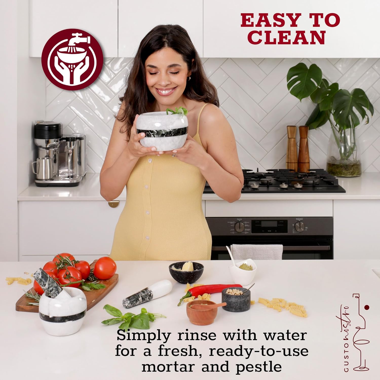 - LUXURIOUS KITCHEN MASTERPIECE This pestle and mortar set, designed with enhanced functionality and aesthetics, is an ideal gift for any kitchen enthusiast, Crafted from premium marble ensures optimal grinding performance, perfect for both novice cooks and seasoned chefs alike