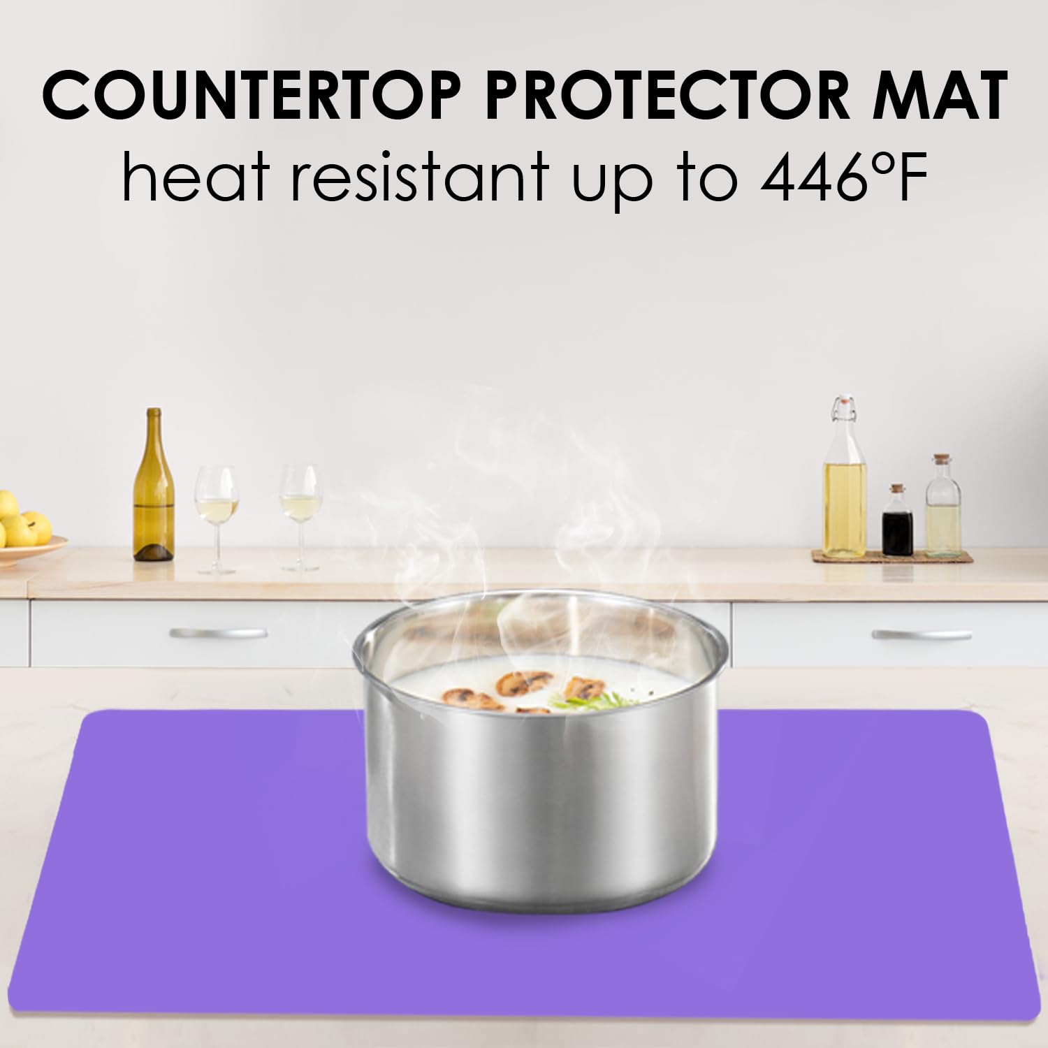- đ ăSilicone Countertop Protector Mată: The safe temperature is between -40°F and 446°F (â¤230°C), our purple silicone placemat for kids protects the countertop from heat damage, scratches, stains. Place it under the stove, air fryer, microwave, oven, this nonslip silicone table mat keeps extending the life of tables, enjoy your cooking more relaxedly.