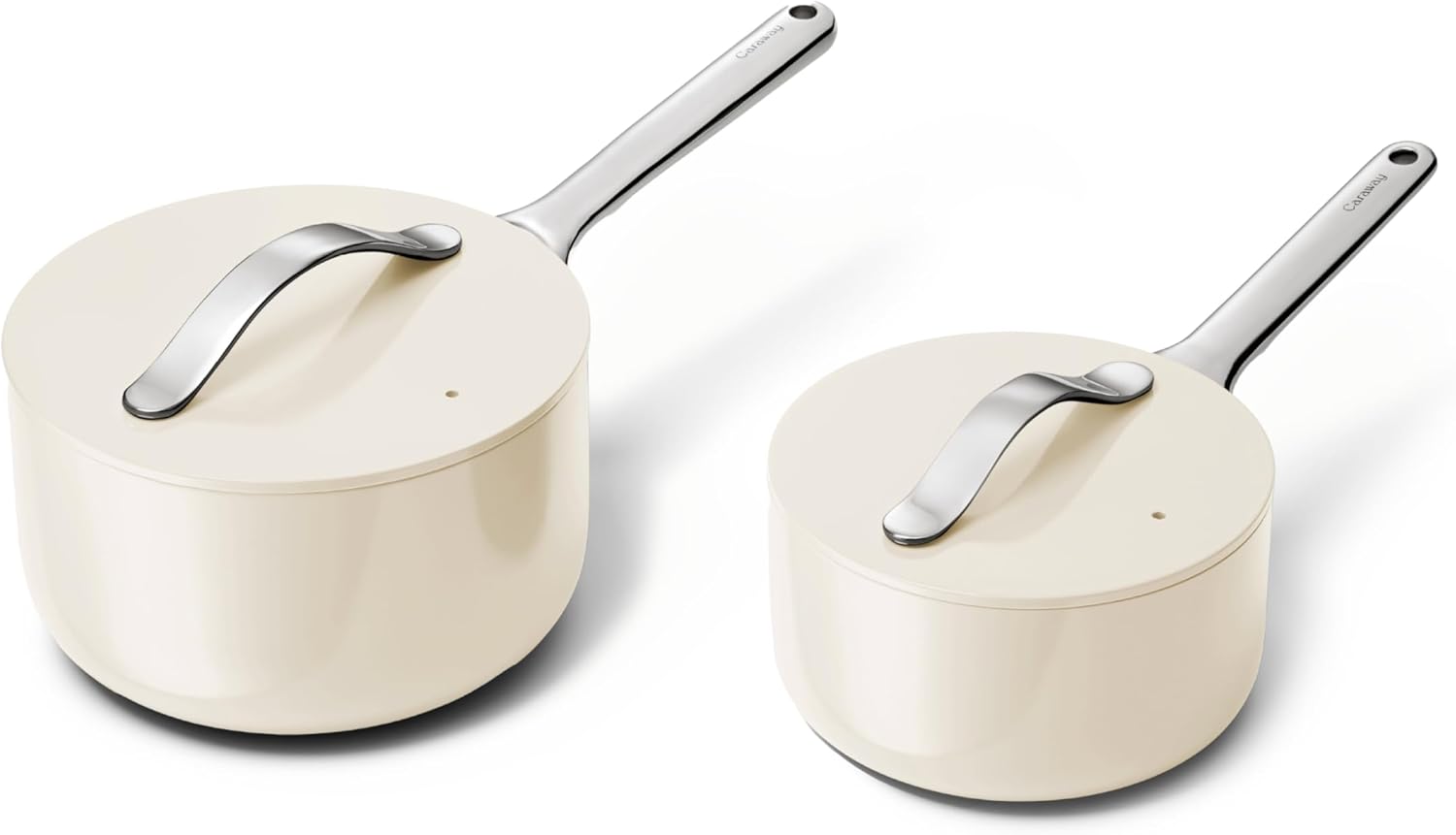 Caraway Nonstick Ceramic Sauce Pans with Lids (3 qt & 1.75 qt) - Non Toxic, PTFE & PFOA Free - Oven Safe & Compatible with All Stovetops (Gas, Electric & Induction) - Cream