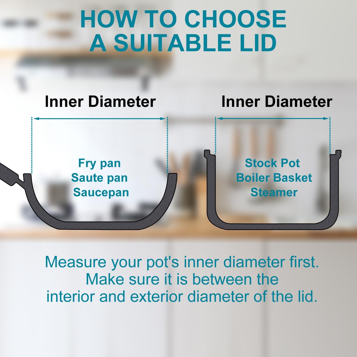 - Universally fits any round fry pan or saucepan with a matching circumference.