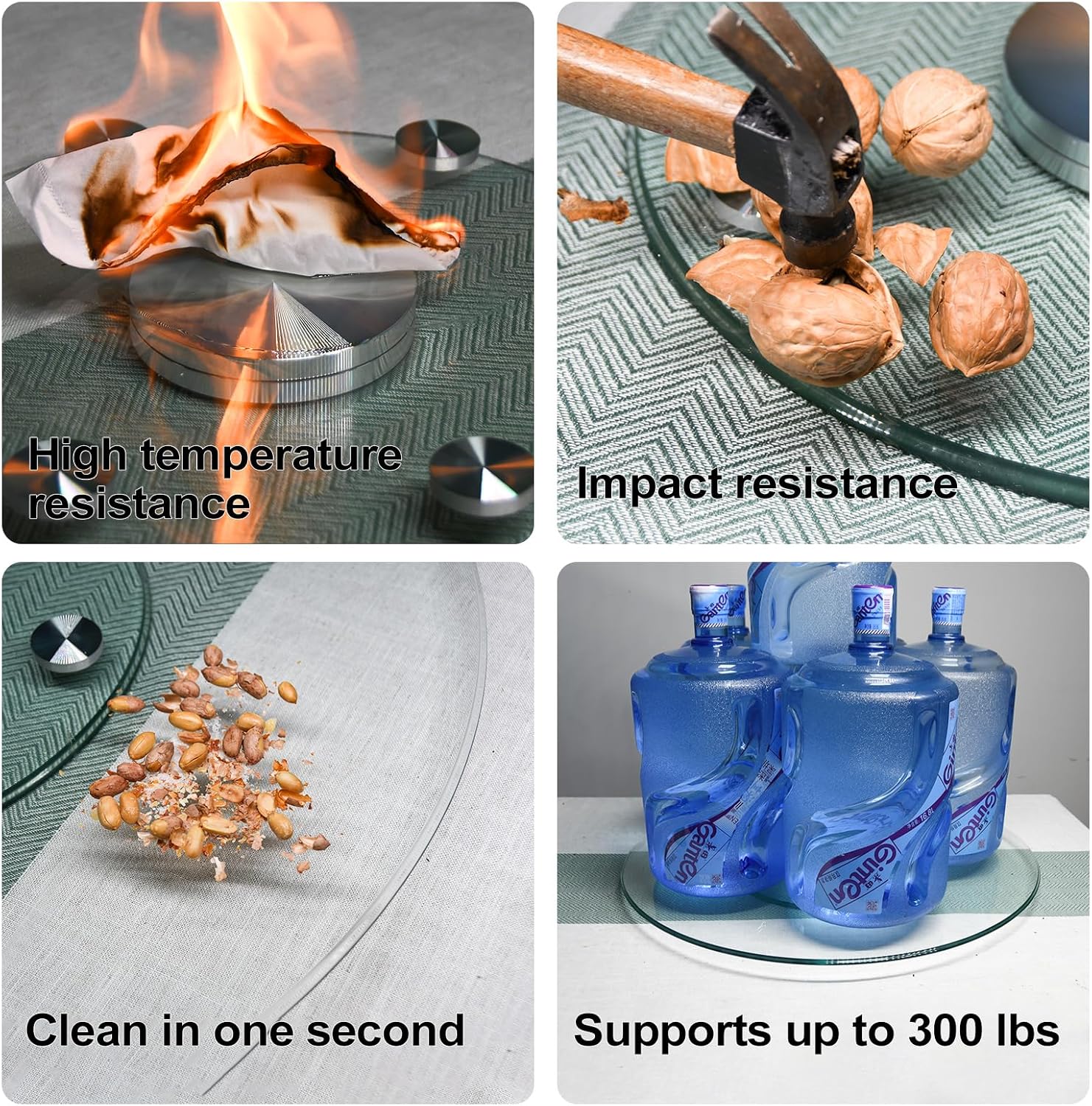 40" Heavy-Duty Lazy Susan Turntable - 1/3" Extra-Thick Tempered Glass - Silent & Smooth Swivel for Large Dining Tables, Centerpiece