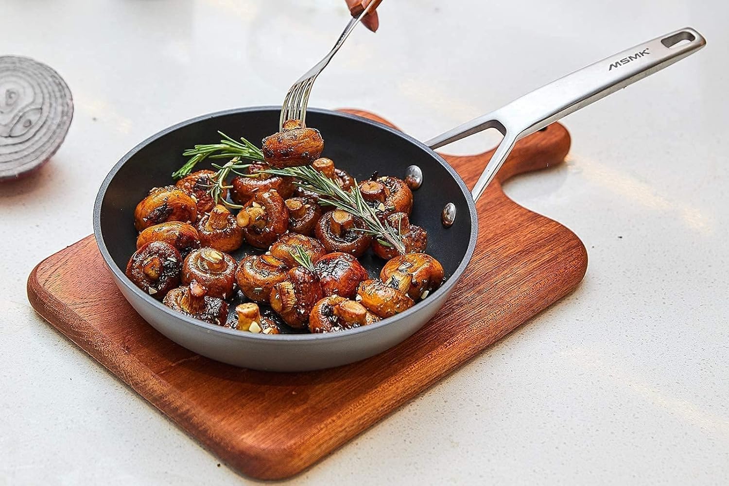 - Professional heat distribution: 4mm-thick smooth stainless steel bottom & pan nonstick design with thick mouth and thin body allow for more even heat distribution. The heat conduction of the MSMK nonstick pan helps to lock in the flavor and moisture of the steak, and helps to create a flavorful, crispy crust. The result is a steak that is tender and juicy on the inside, with a flavorful, crunchy exterior