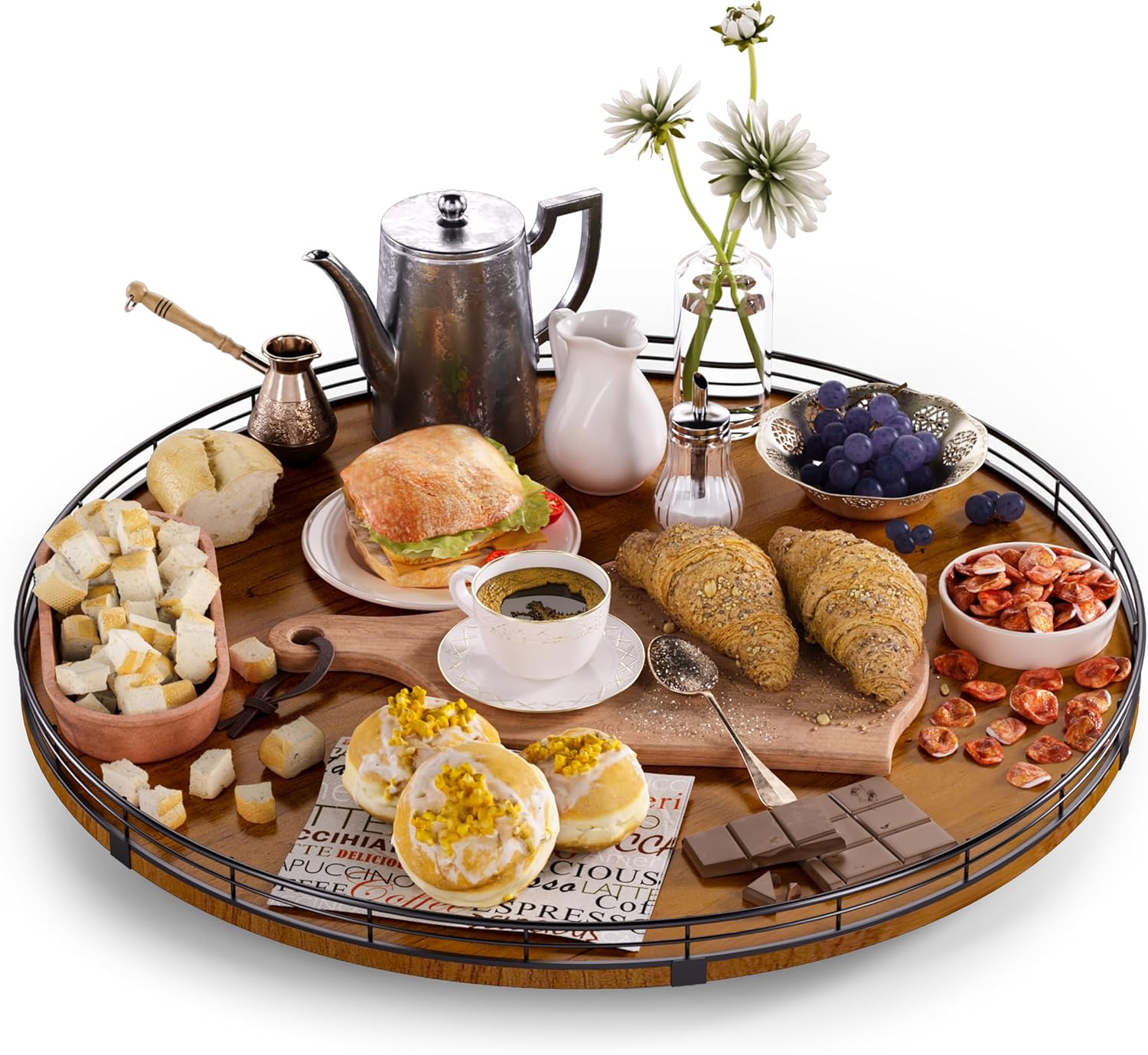 Farmhouse Oak 21" Lazy Susan Turntable Organizer for Cabinet, Round Wooden Lazy Susan Organization and Storage for Dining Table, Pantry, Kitchen, Countertop, Cupboard,Home Decor, Walnut (21)