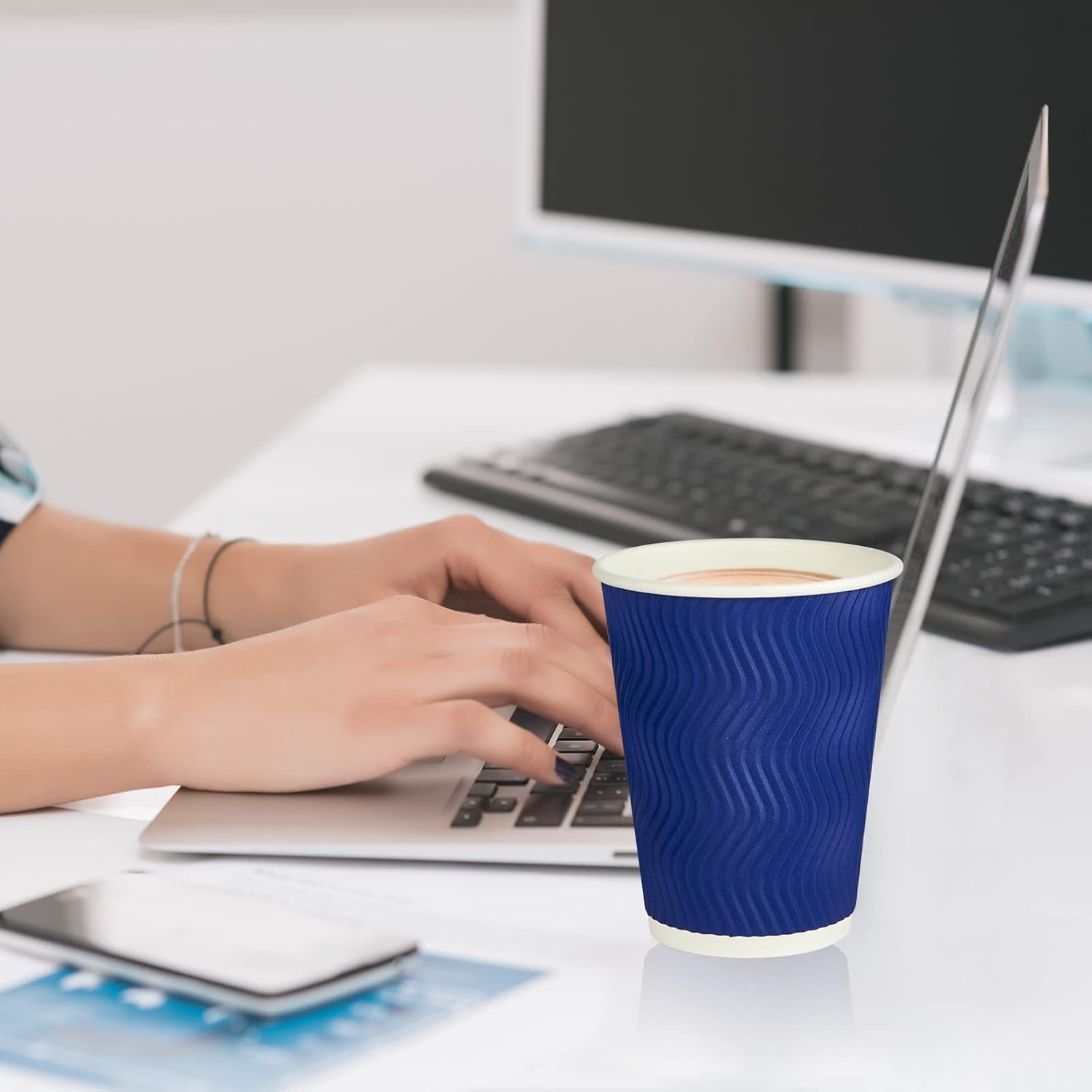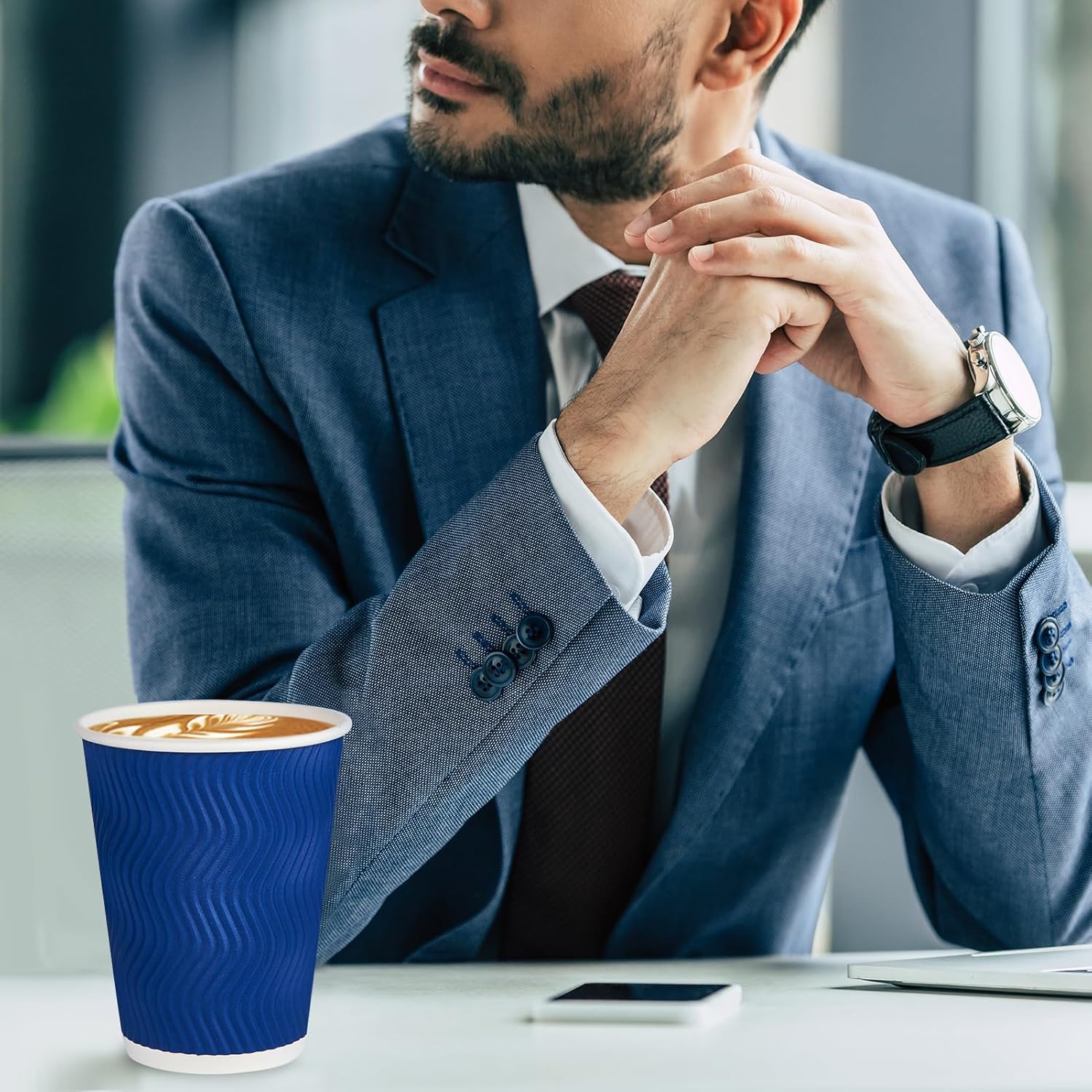 JollyPack 120 Pack 12 oz Paper Coffee Cups, Blue Disposable Beverage Cups with Insulated Ripple Wall for Hot or Cold Drinks