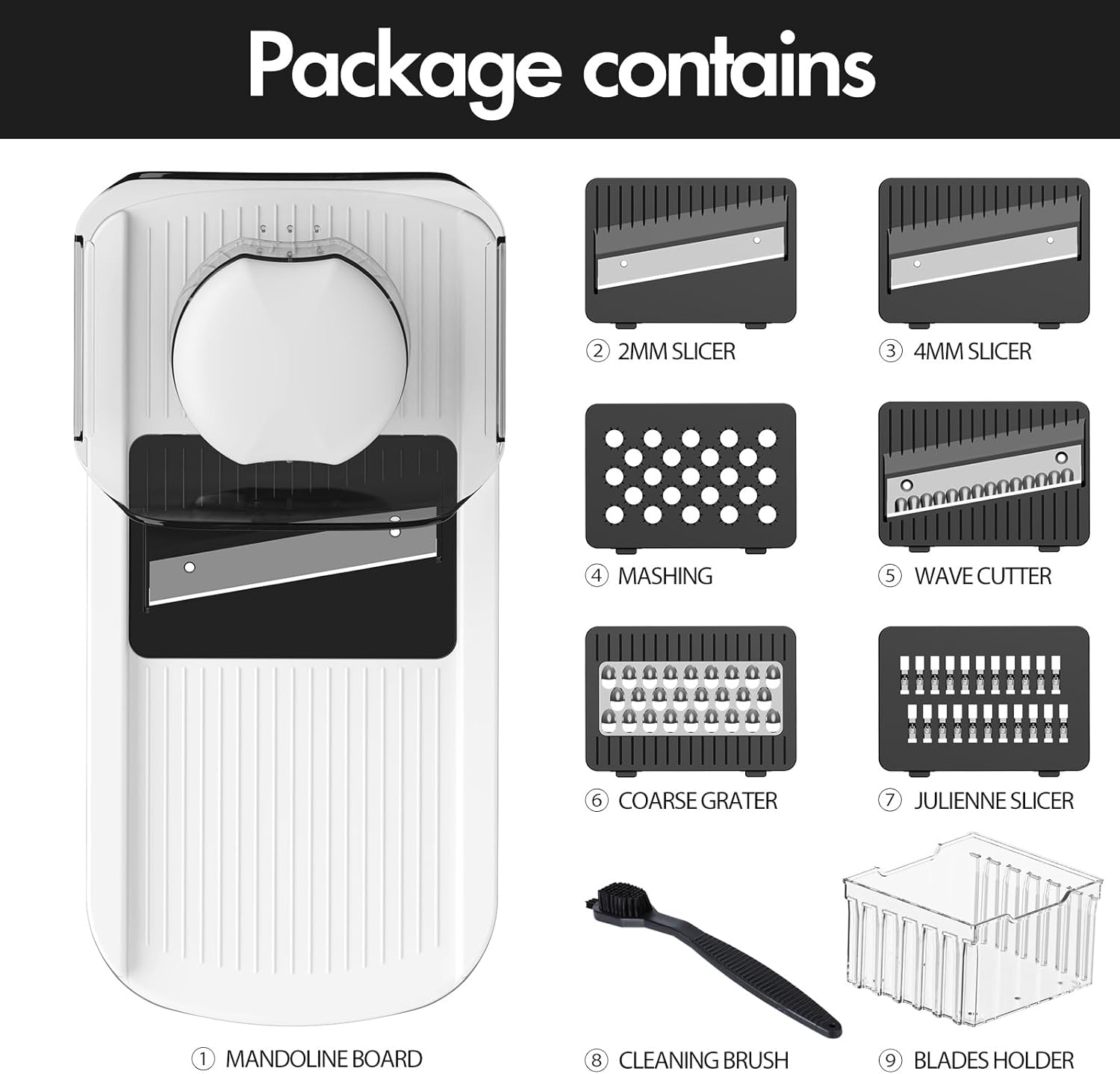 - Capacity:Also comes with a finger guard to protect your fingers and a knife holder boxes for storage. 2L containers can hold more vegetables;At the same time, all the accessories can be stored in it
