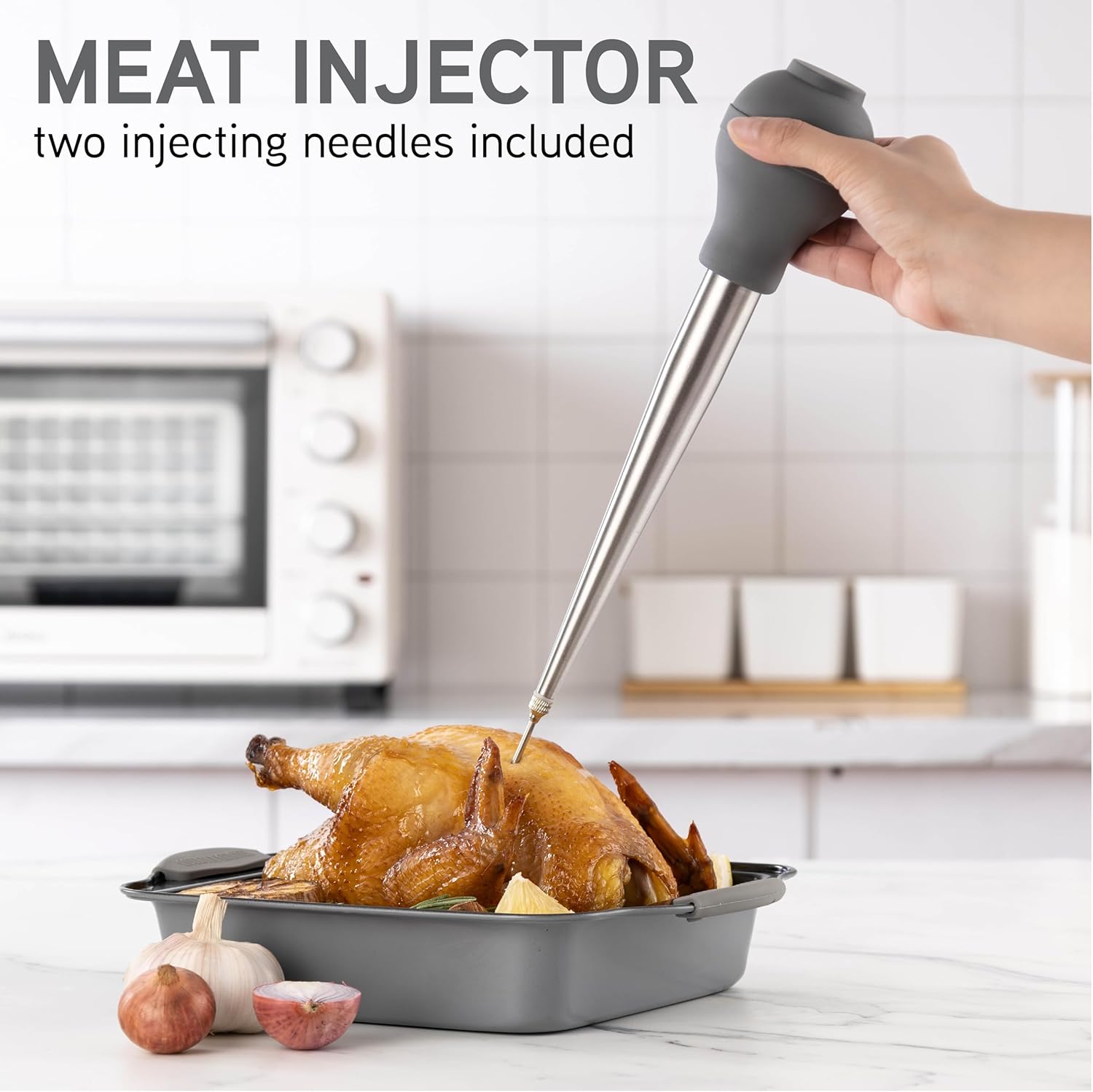 - Precise Basting: Effortlessly infuse flavor and moisture into your dishes with the food-grade syringe baster—great for evenly spreading butter drippings, glazes, and roasting juices over your poultry.