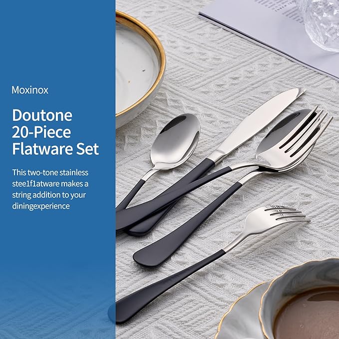20-Piece Black Silverware Set, 18/0 Stainless Steel Black Handle Flatware Set, Service for 4, Modern Cutlery Set Includes Dinner Knives Forks Spoons, Mirror Polished, Dishwasher Safe