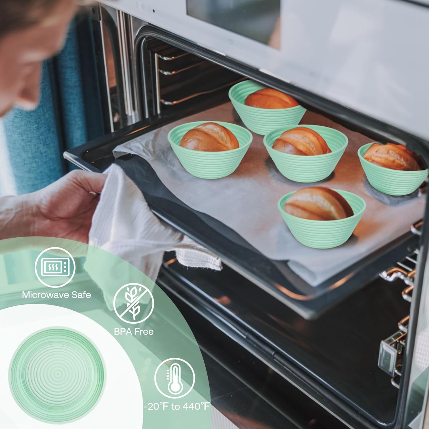 Silicone Banneton, Sourdough Bread Baskets (Set of 6, 5 Inch), Round Proofing Bread Bowls with Starter Kit, Bread Making Baking Supplies