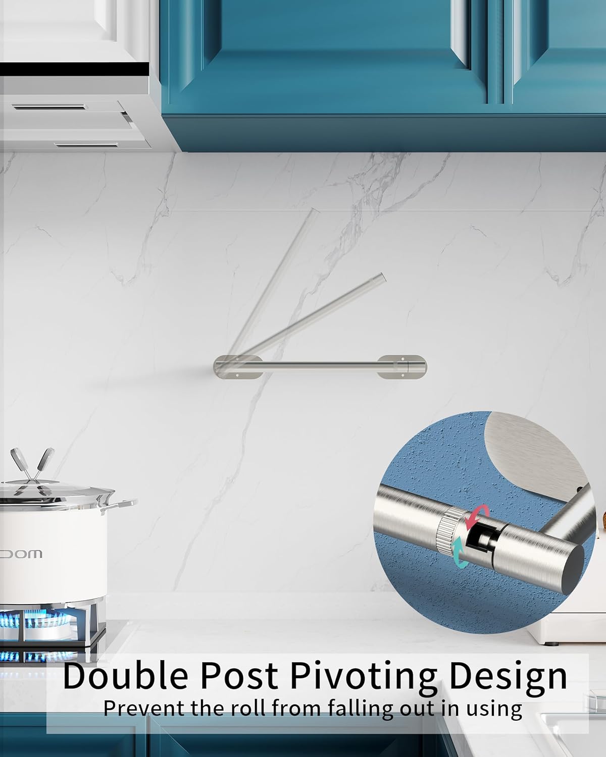 - 【INNOVATIVE DESIGN】:The double-post pivoting design makes it simple to replace the paper towels. The revolving buckle successfully keeps the kitchen towel from coming off, and the symmetrical design adds aesthetic value to your kitchen.