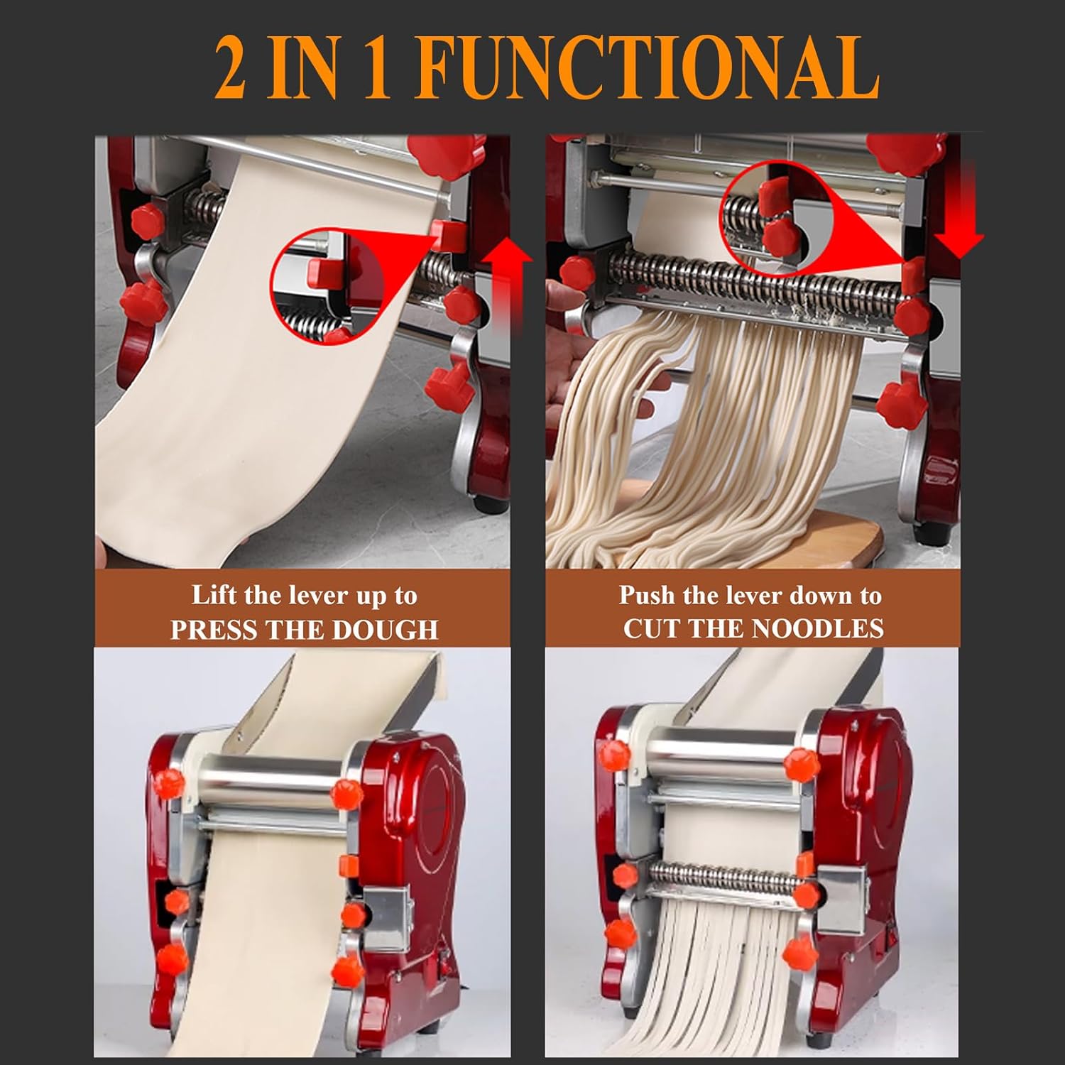 - Commercial And Home Use : Our electric pasta roller machine is the perfect choice for small commercial kitchens and busy families. This is a great pasta machine to make ravioli, dumplings, spaghetti, flat dough sheets, and tagliolini. Very easy to clean.