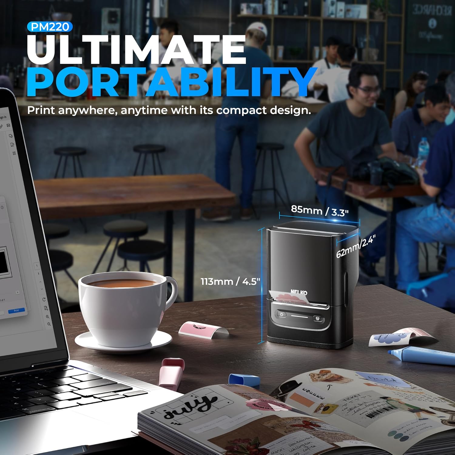 Nelko Label Maker Machine with Tape, PM220 Bluetooth Label Printer, Portable Thermal Printer for Small Business, Address, Logo, Clothing, Mailing, Sticker Printer for Phones & PC, 1 Count, Black