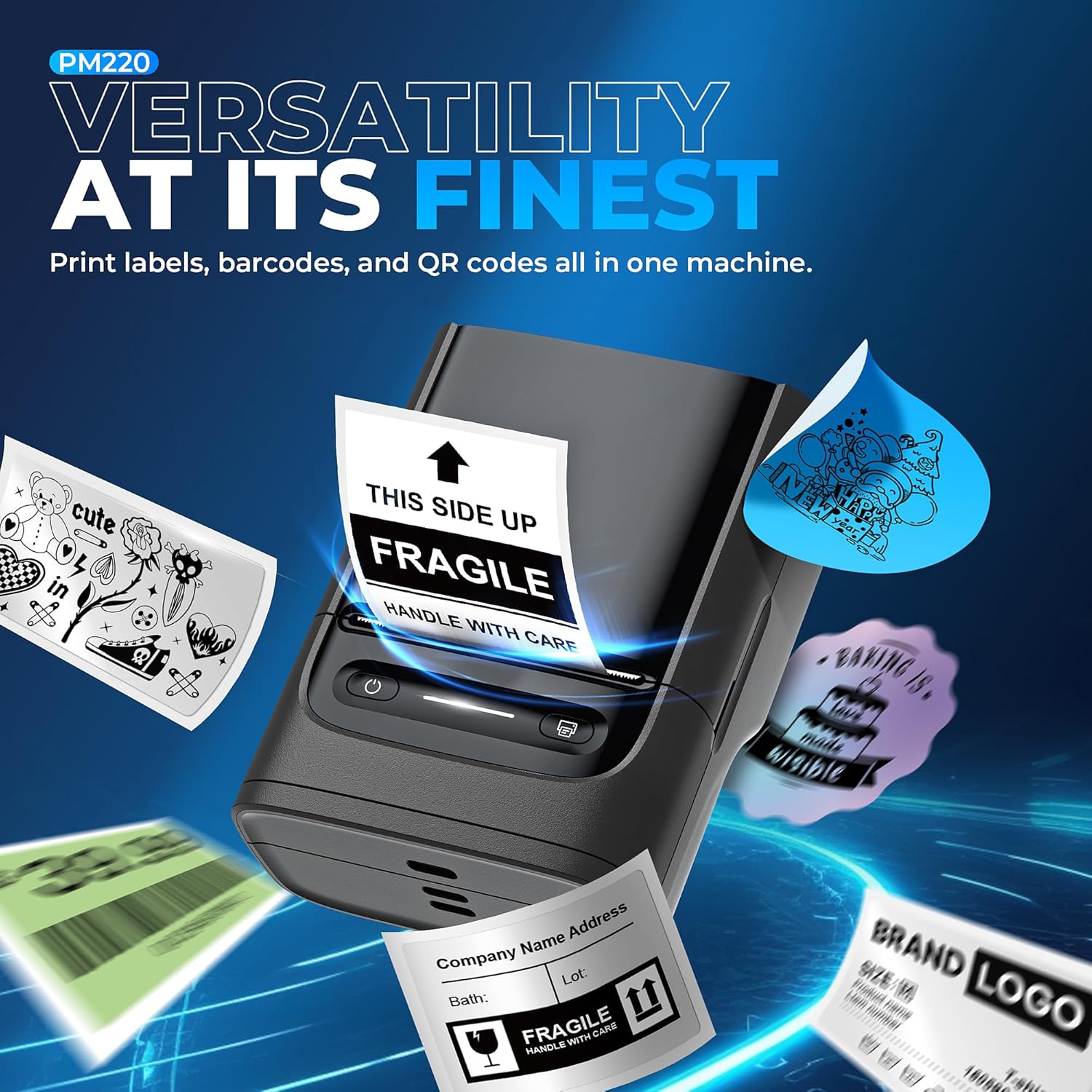 - Powerful APP- The PM220 label maker machine with tape comes with label templates and can set up your own templates. This label printer allows you to customize and format labels, supporting various features such as QR codes, barcode labels, tables, materials, time, figures, text, icons. This label maker machine with tape APP included more than 90 +Fonts, 14+ Languages, 450+ Materials. Please do not tear or destruct the green sticker on the back of the label strip, otherwise it will affect the printing effect