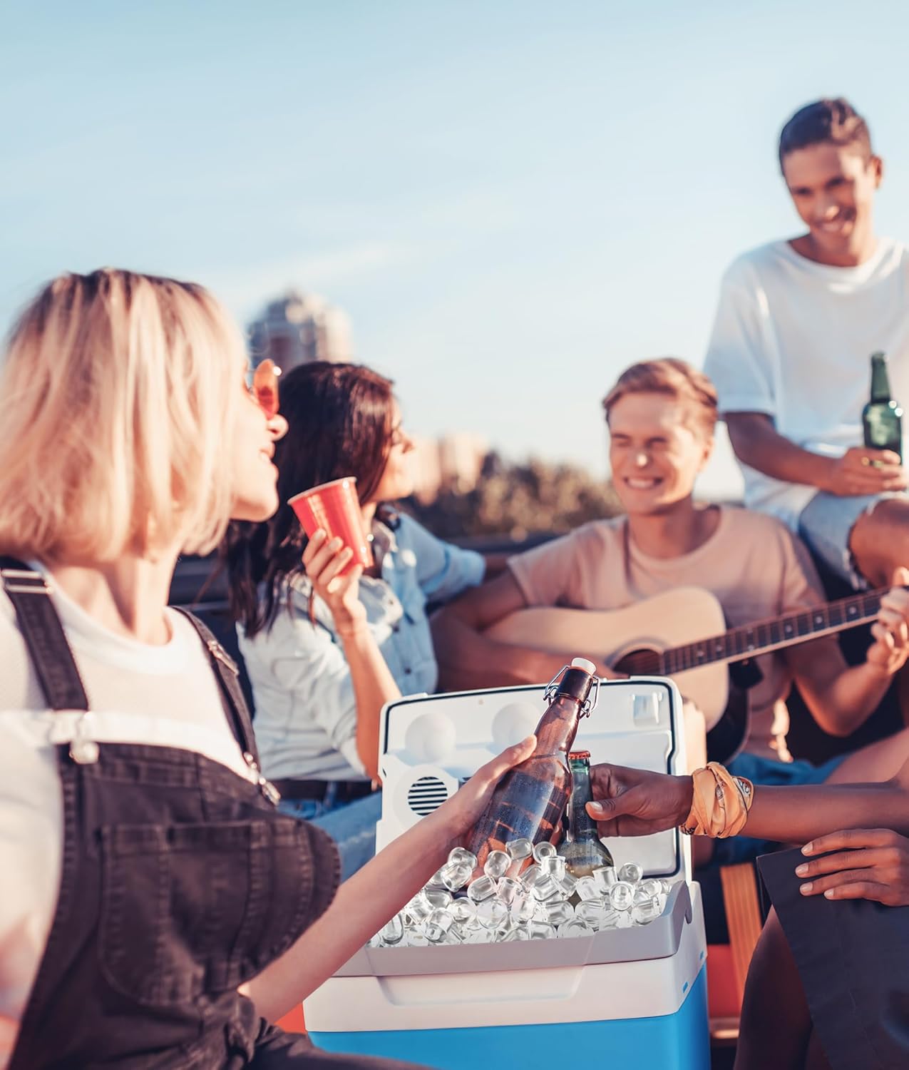 - Sleek and Compact Design: Perfectly sized to fit in any kitchen, bar, RV, or party setup, this compact ice maker is as portable as it is stylish. Its sturdy handle makes it easy to move, so you can enjoy ice-cold drinks anywhere