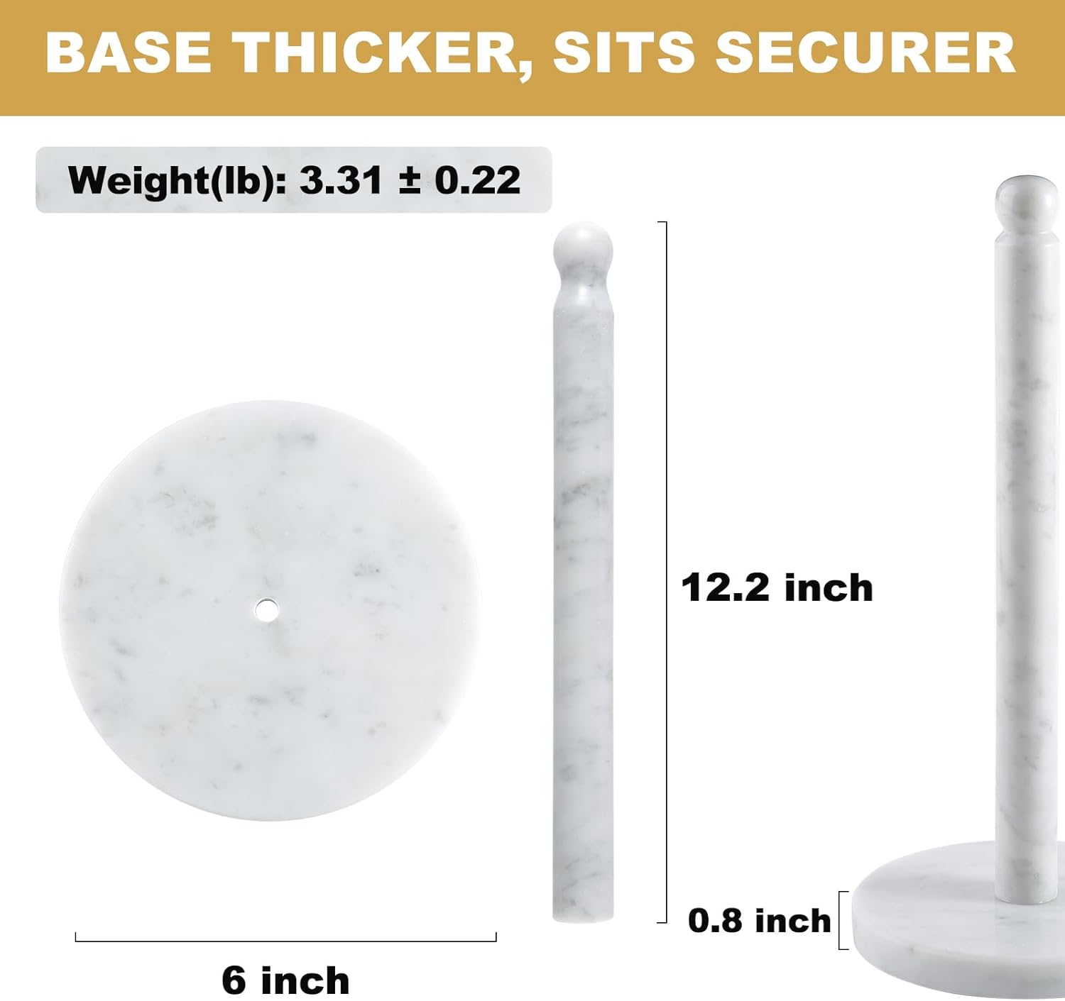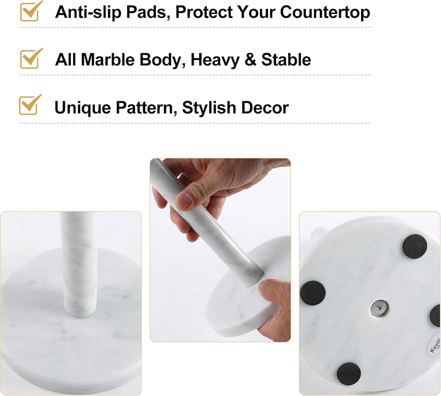 - Sturdy and Durable: Koville’s high quality paper towel holder is made of heavy marble hand-polished, smooth and delicate touch surface, keep the paper towel holder super sturdy and won't tip over