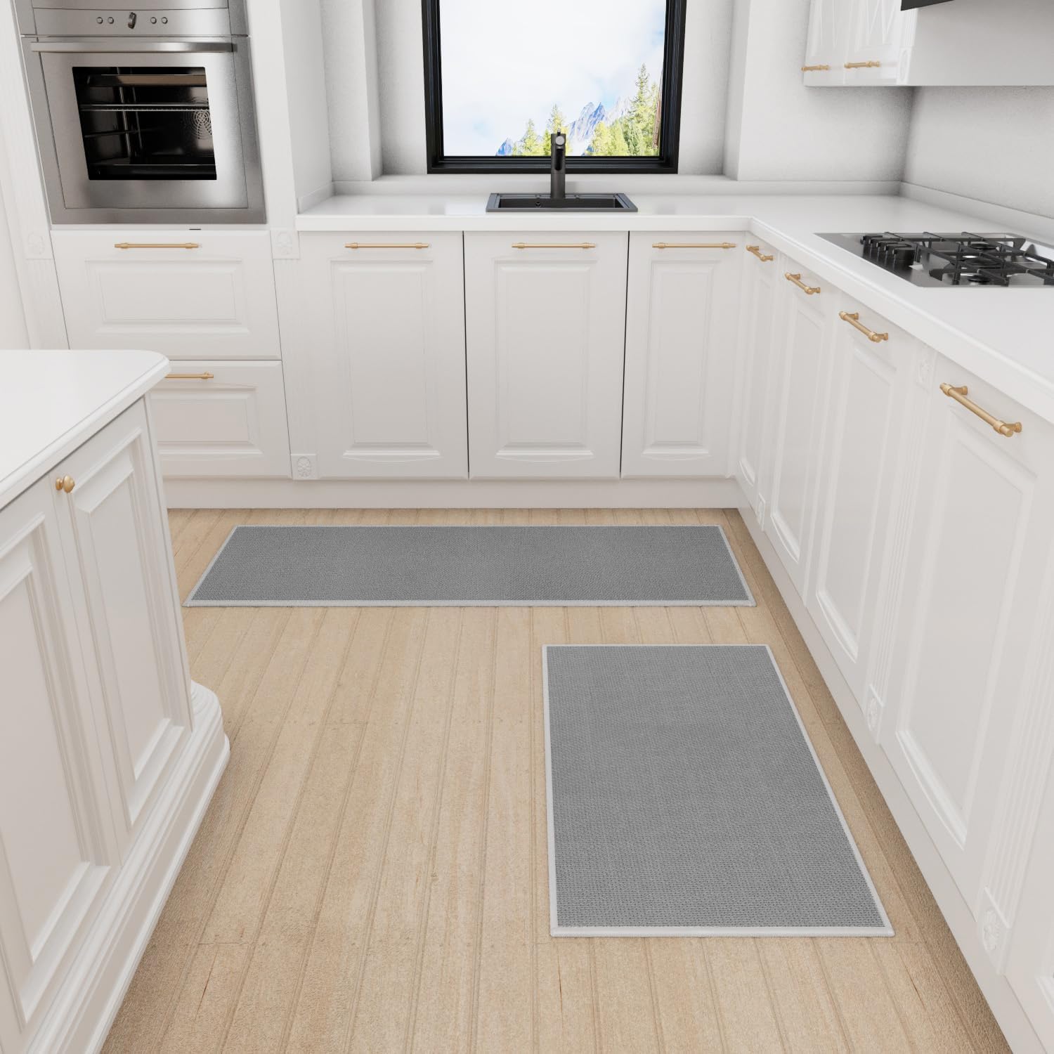 - HIGH-QUALITY AND DURABLE: As a Rug Used In High Traffic Cooking Areas, They Will Protect Your Flooring From Scratches, Scuffs, and Spills, Also the Cushioned Rug Protctect The Floor From The Dropping Sharp Tableware or Fragile Bowls. The Soft Surface of The Kitchen Mat Will Be The Best Protective Layer.